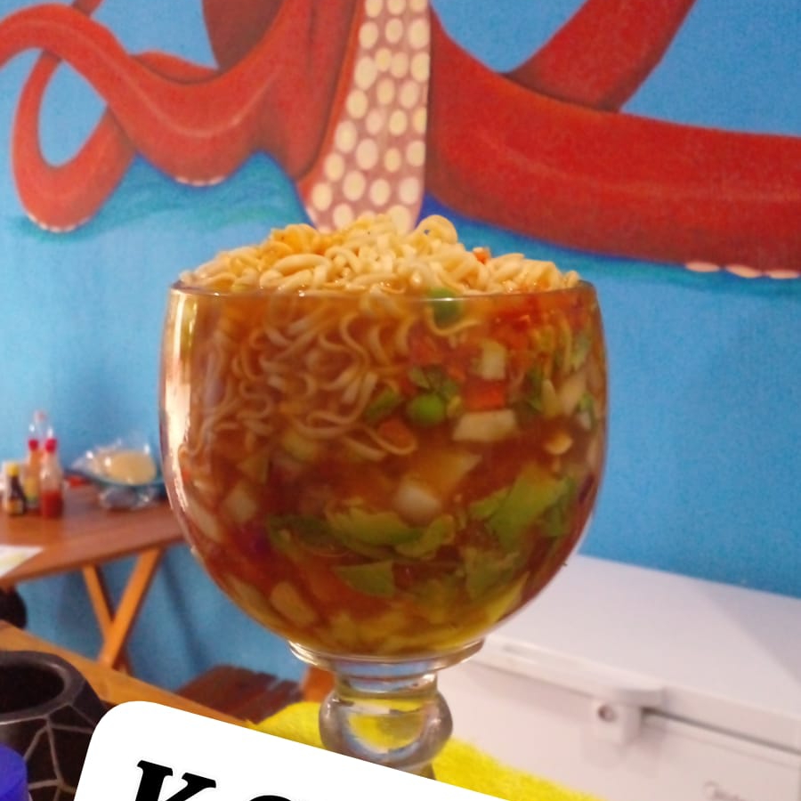 Maruchan, con camarones ,caldo de camarón, salsa mexicana y salsas negras