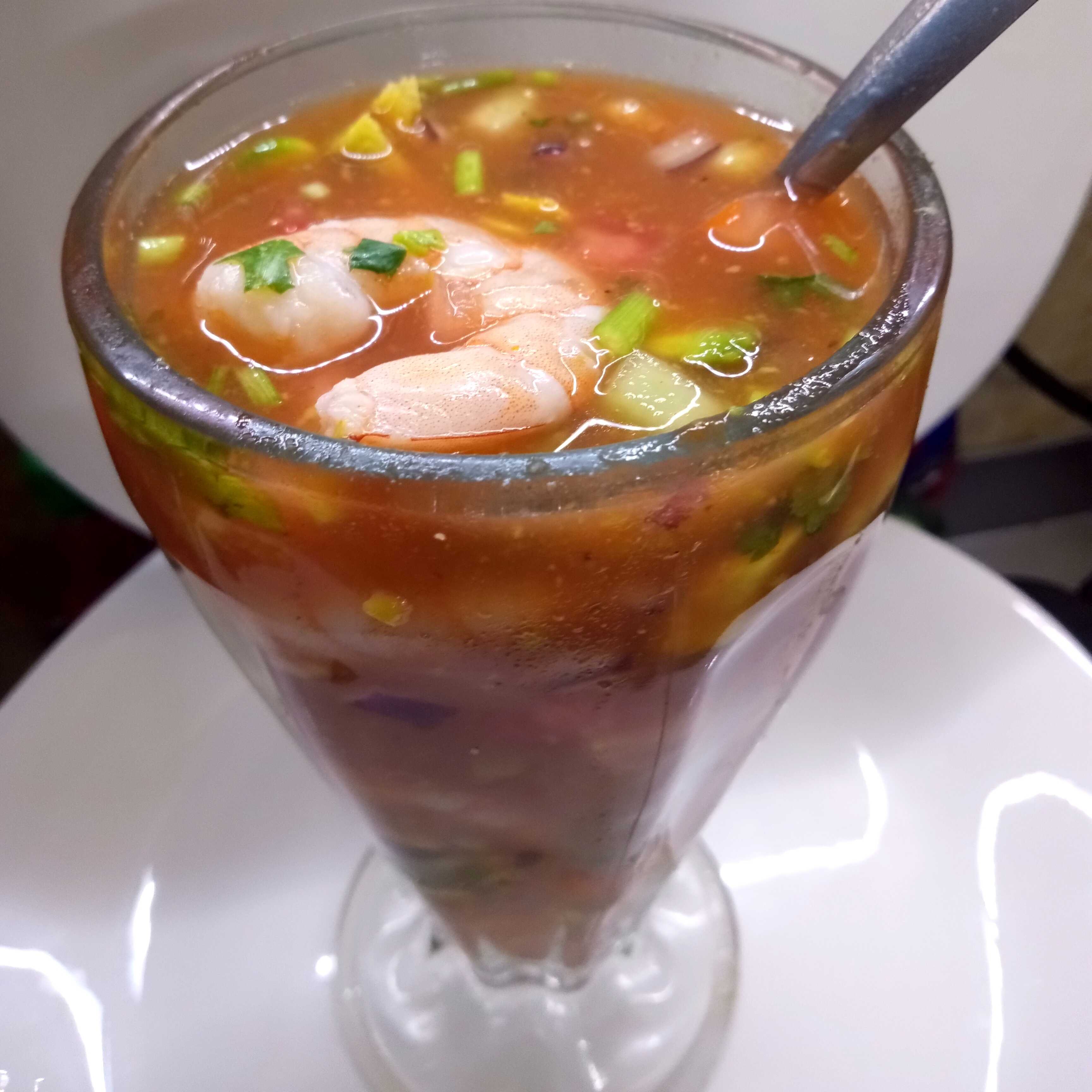 Camarones cocidos ,salsa mexicana ,pepino, limón cátsup ,clamato