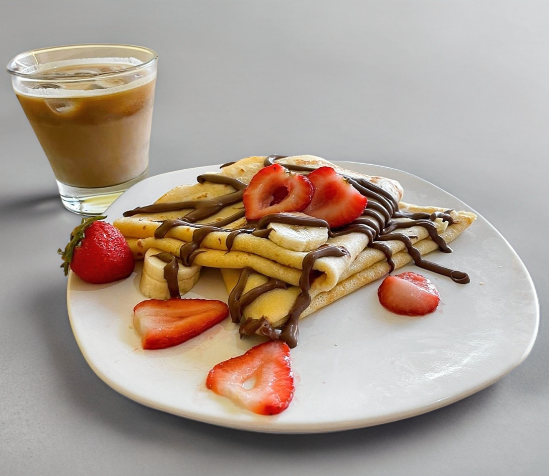 Elaborada con receta de la casa, dos ingredientes a elegir, mermelada de fresa, chocolate, durazno, lechera.