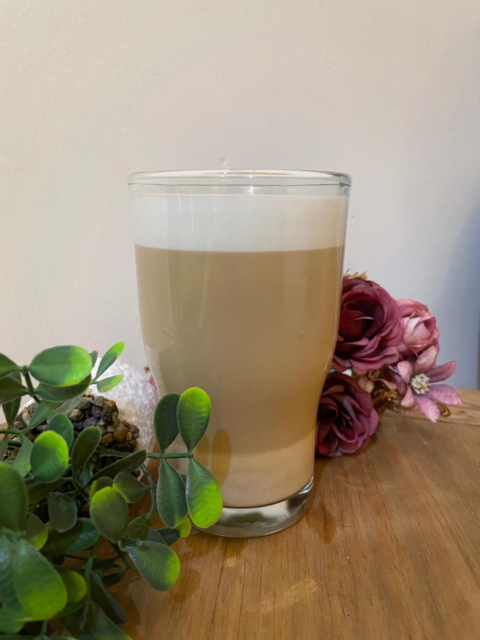 Café con leche coronado con una espesa capa de espuma de leche 16 oz.