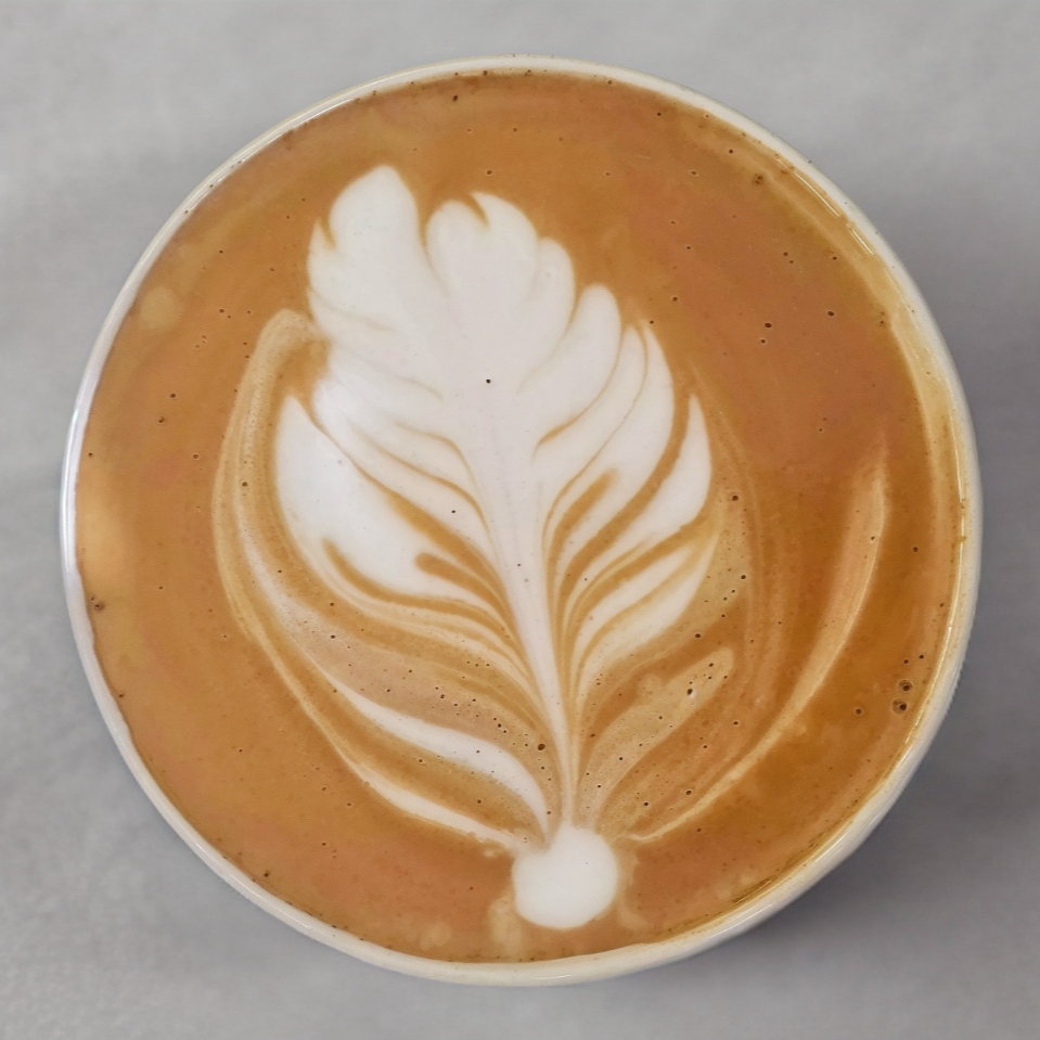 Café con leche coronado con una capa de espuma de leche 16 oz.