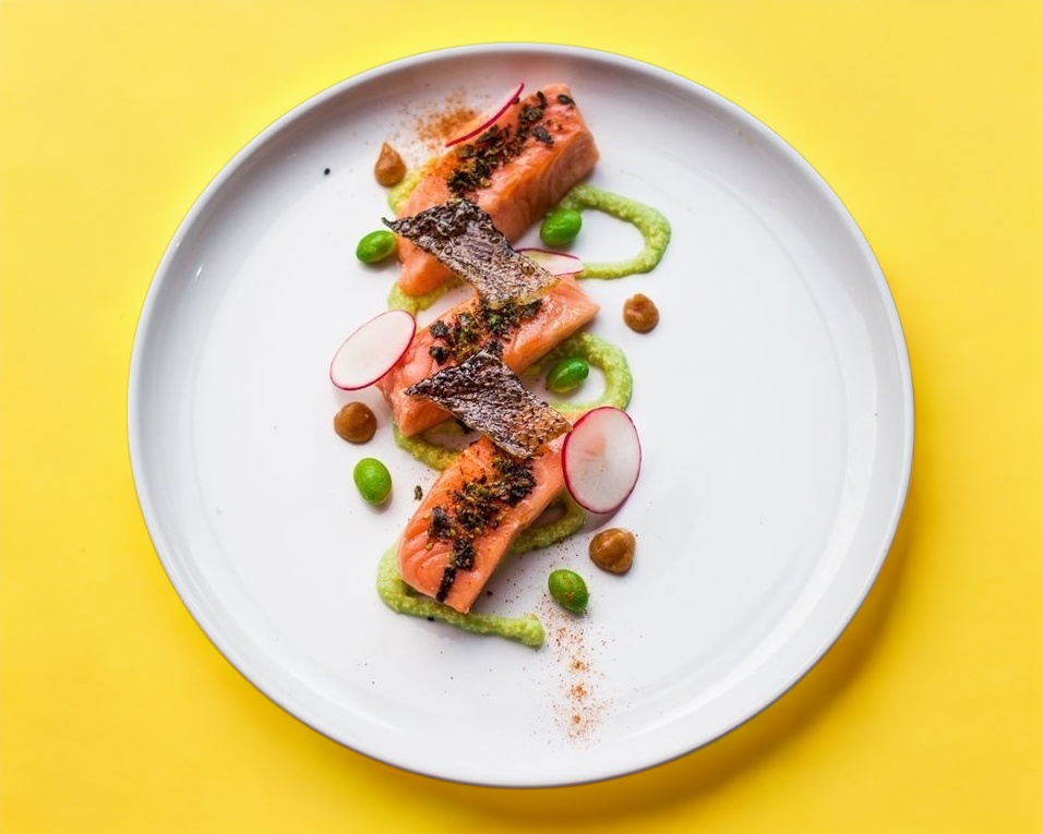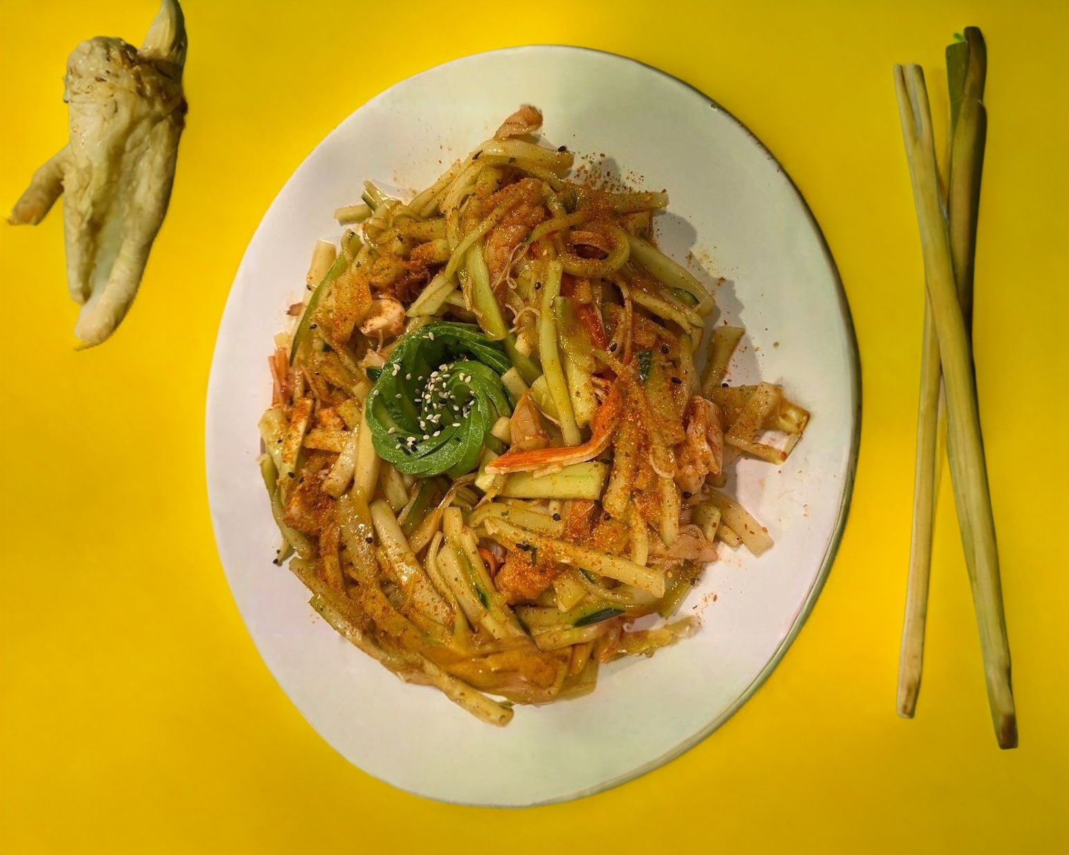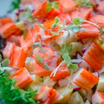 Rollo philadelphia con ensalada agridulce de cangrejo.