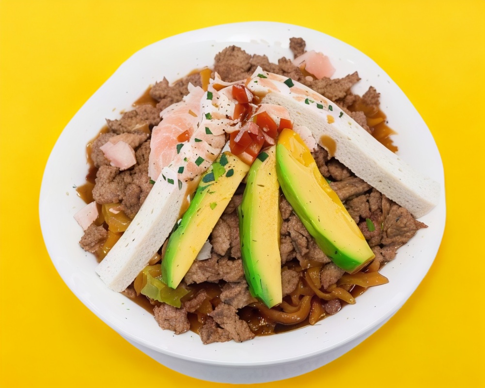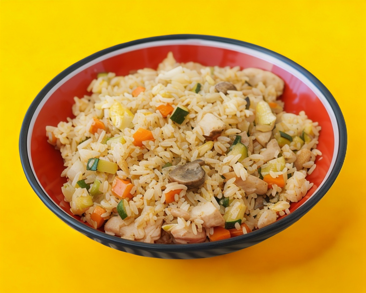 Arroz frito (platillo personal) acompañado de queso philadelphia y aguacate.