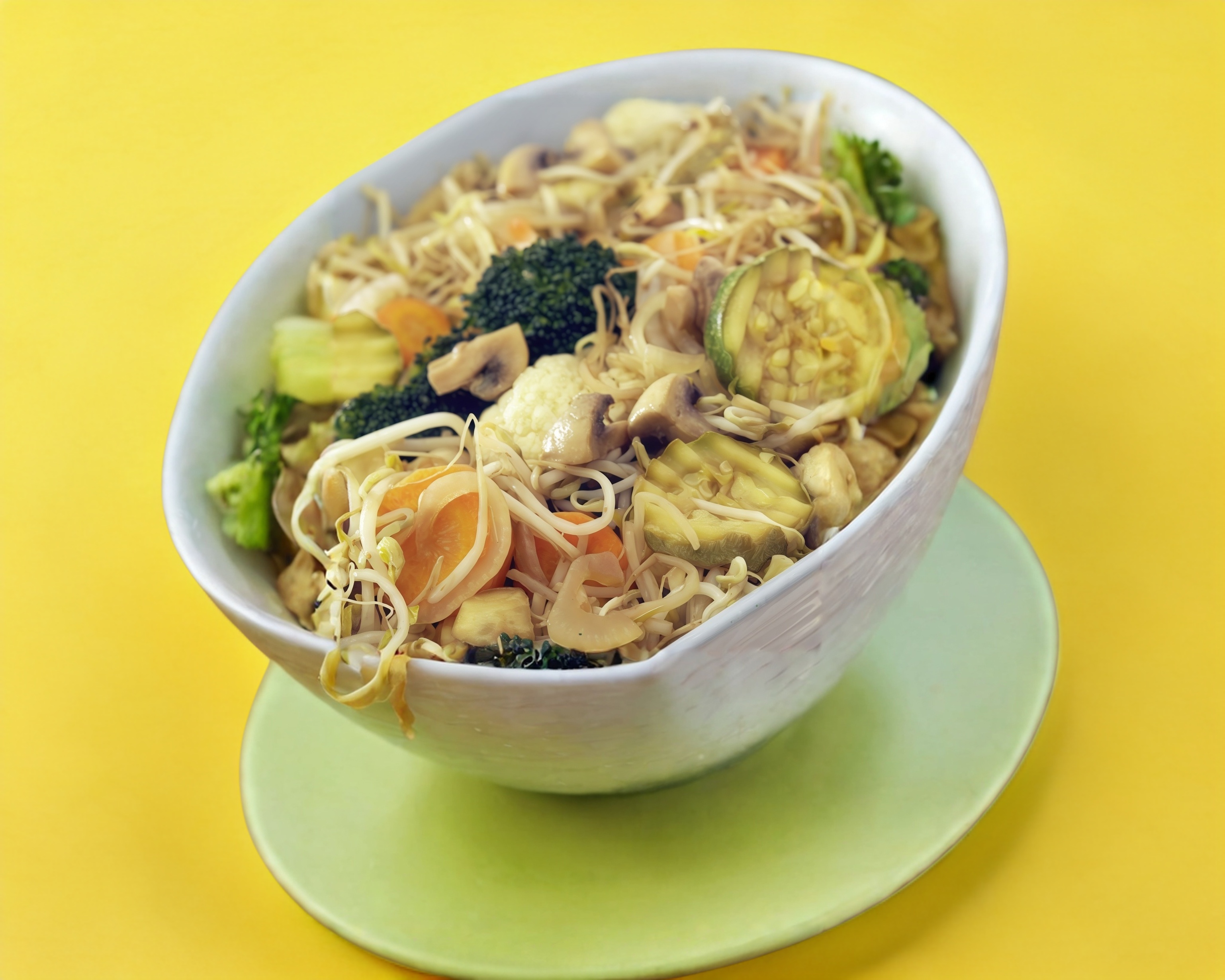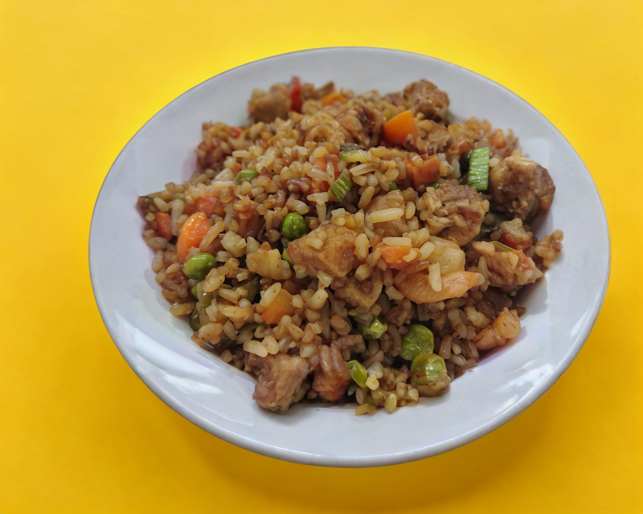 Verduras a la plancha acompañadas de arroz frito y carne a su elección.
