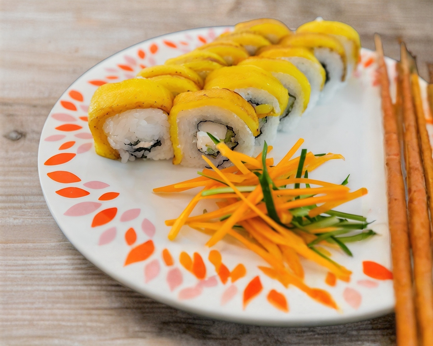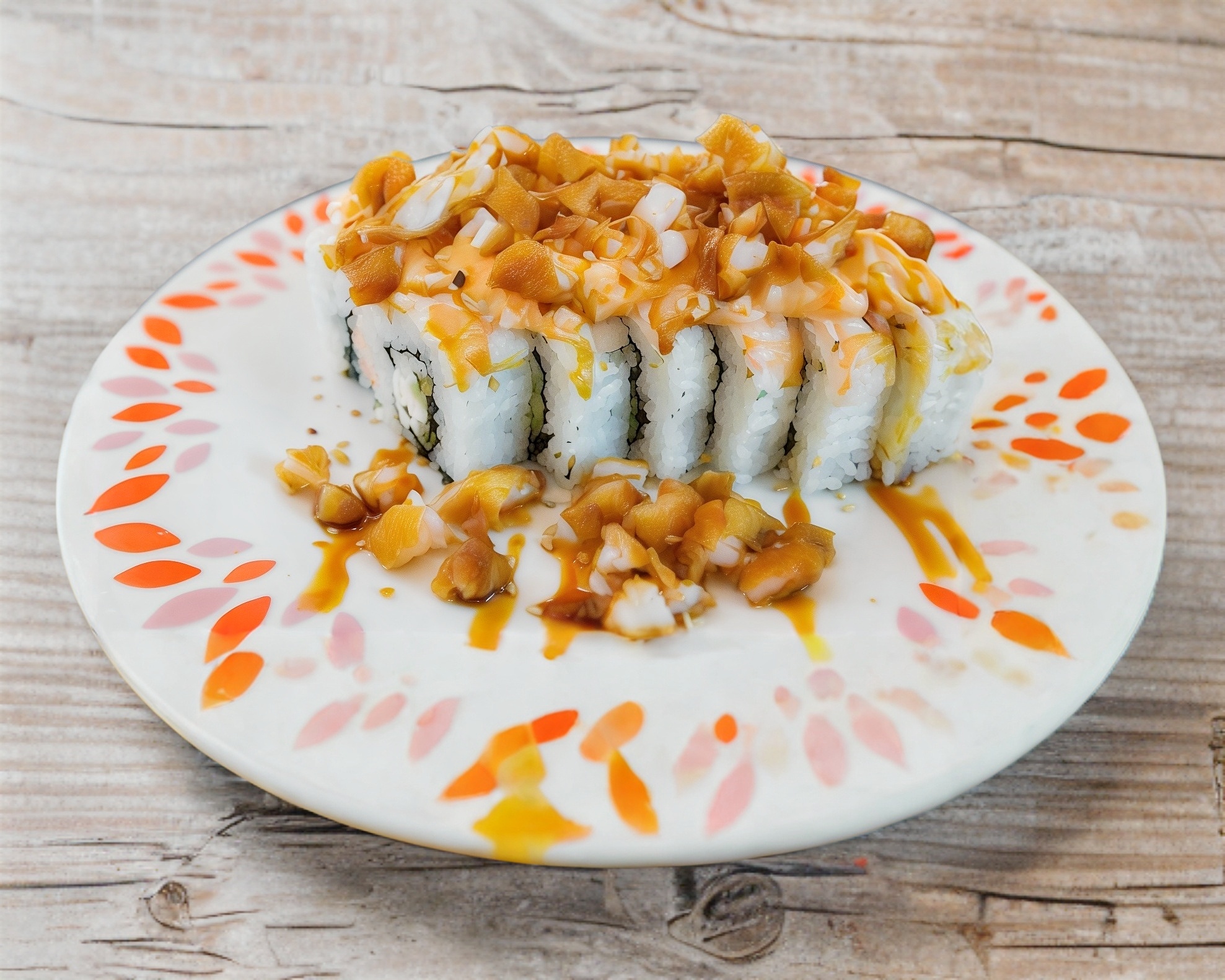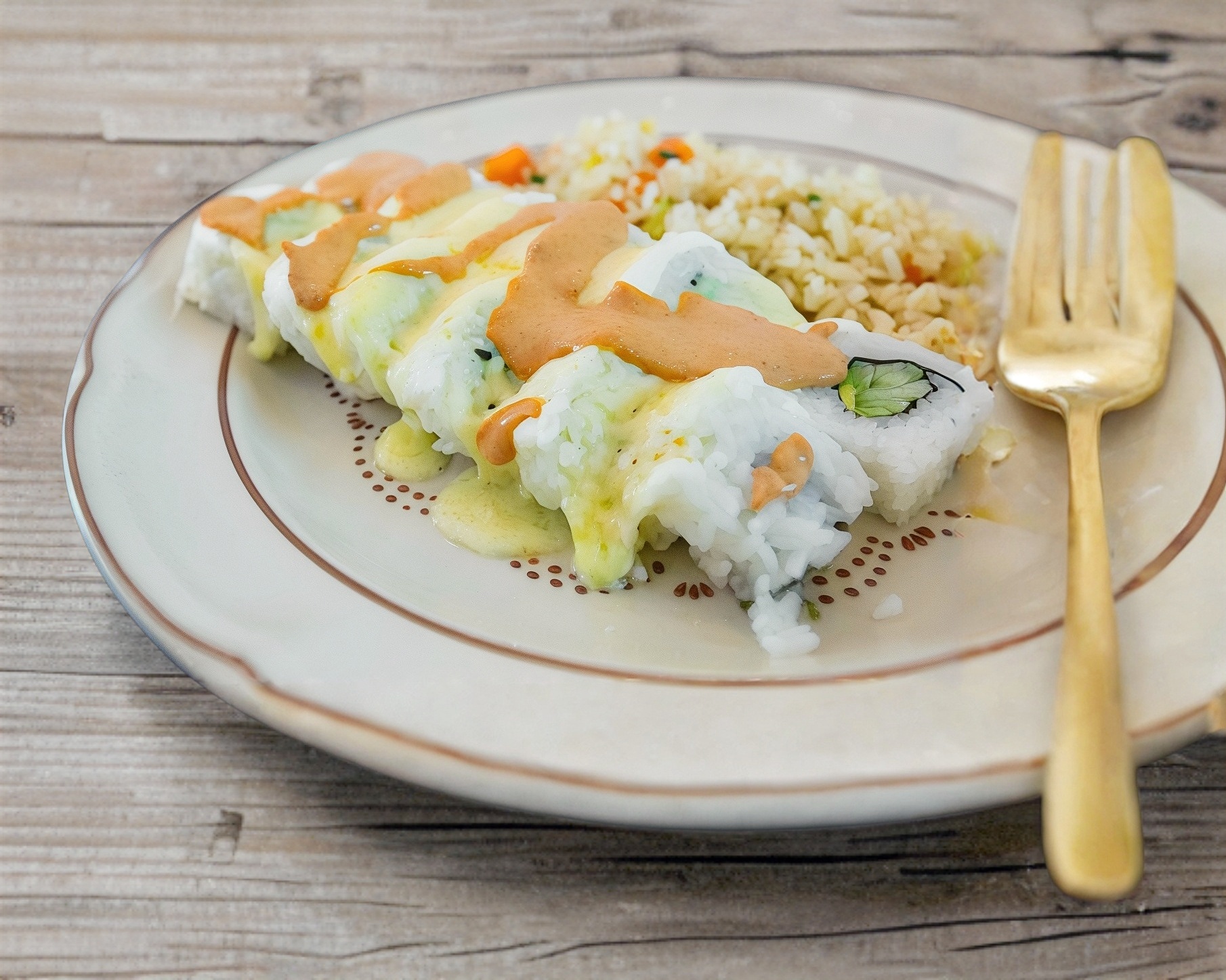 Sushi philadelphia con queso fundido y aderezo de chipotle.