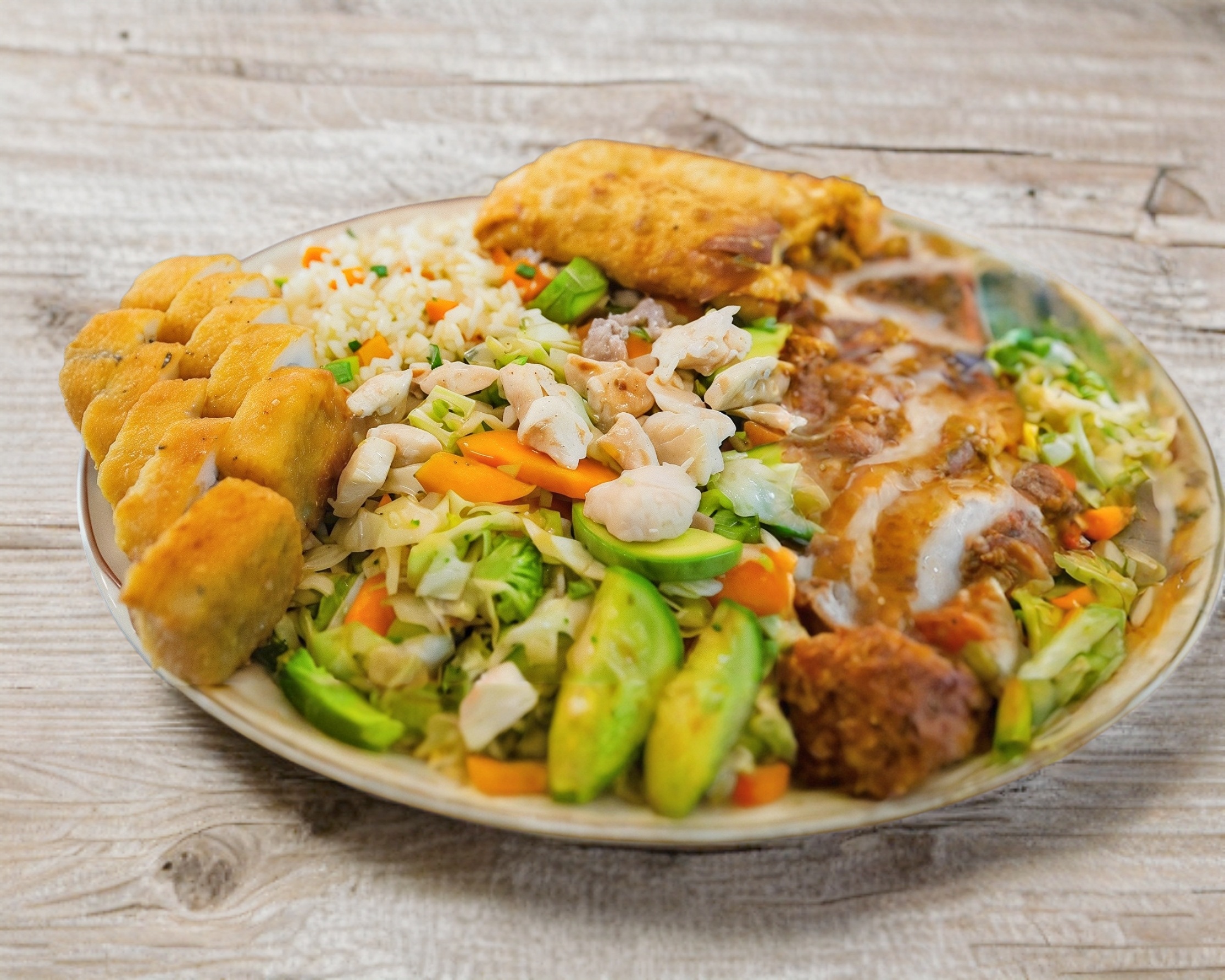 1 chun kun, 1 arroz culichi de res y 1 tepa mixto.
