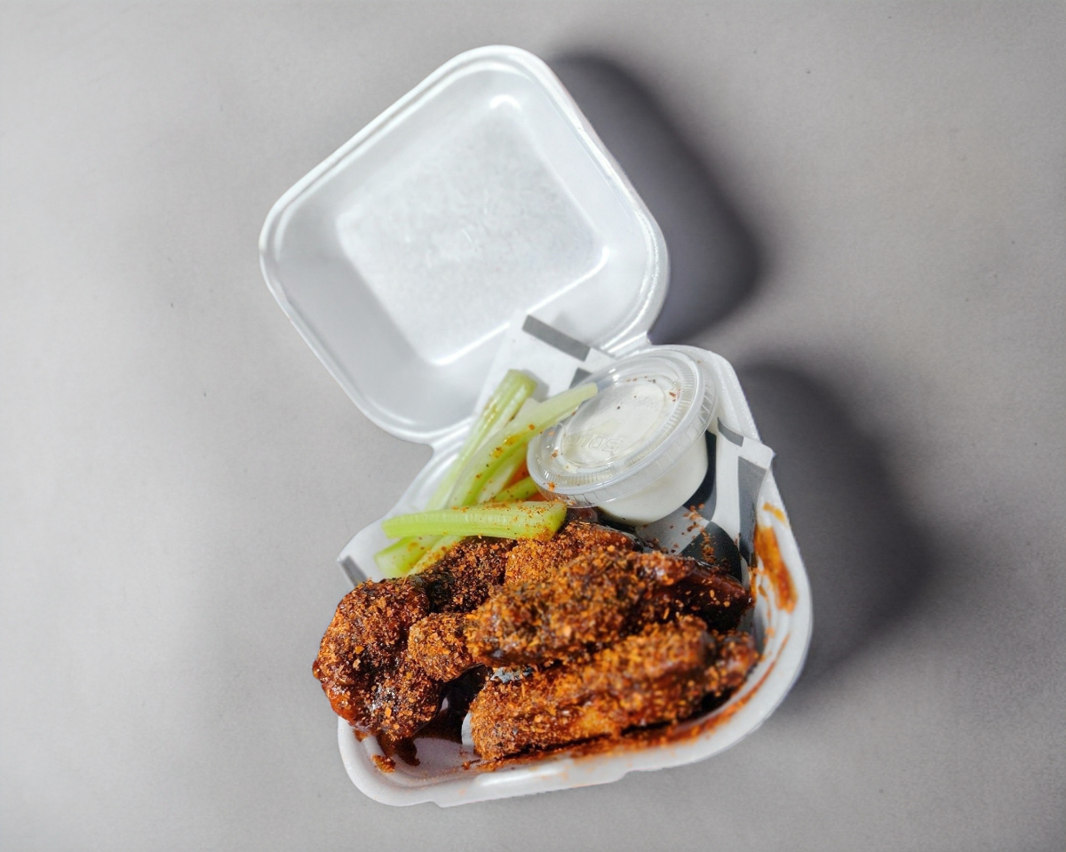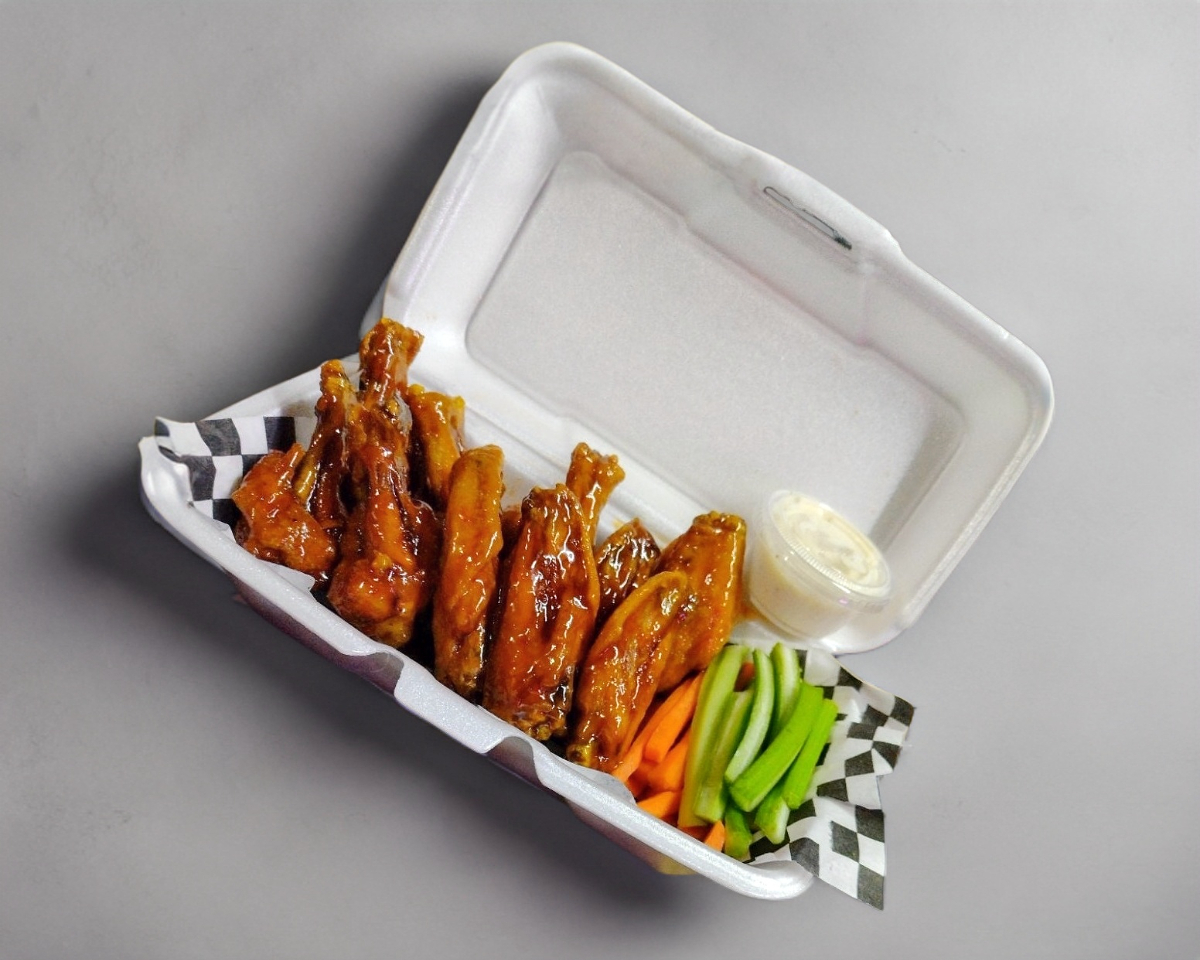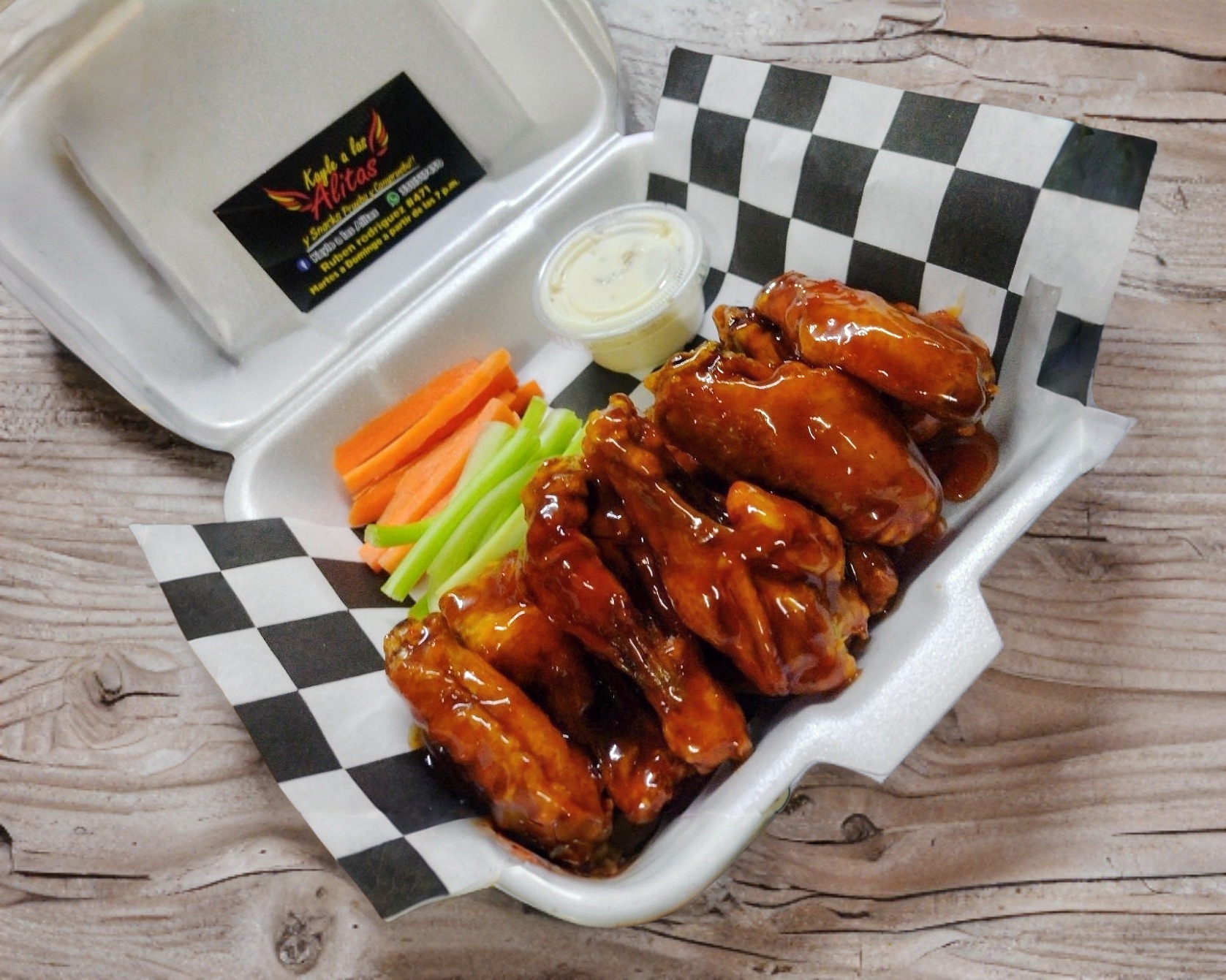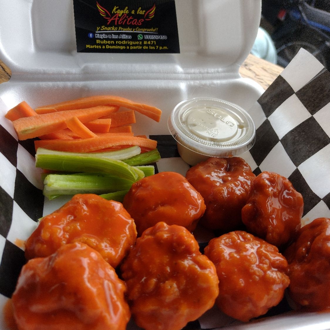 5 piezas de alitas, acompañadas de vegetales y aderezo ranch
