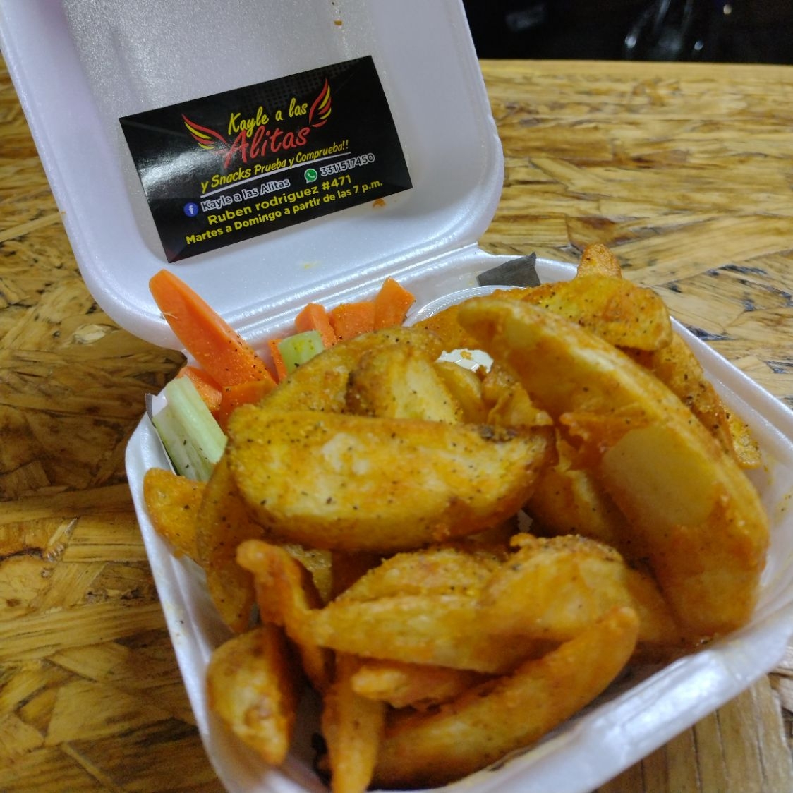 10 Alitas, dedos de queso y papas gajo. Acompañado de vegetales y aderezo ranch