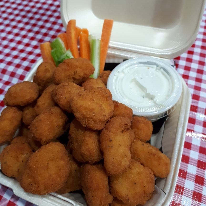 500 Gramos de boneless, dedos de queso, palomitas de pollo y papas a la francesa acompañado de vegetales y aderezo ranch.