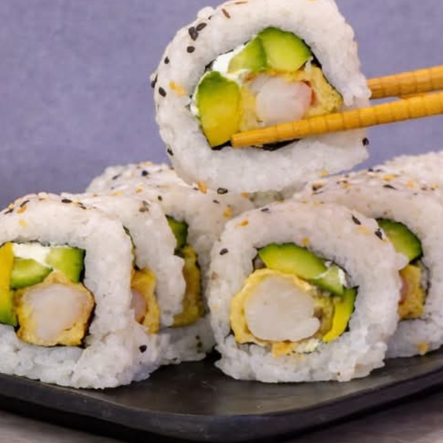 Tampico, camarón roca, pepino, philadelphia, aguacate. Contiene mariscos.