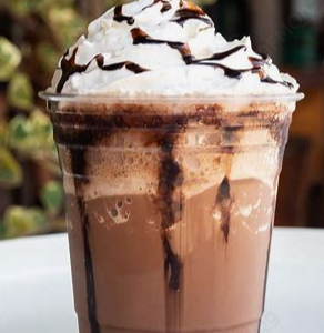 Café cremoso frappé con un sabor a chocolate bien dulce.
