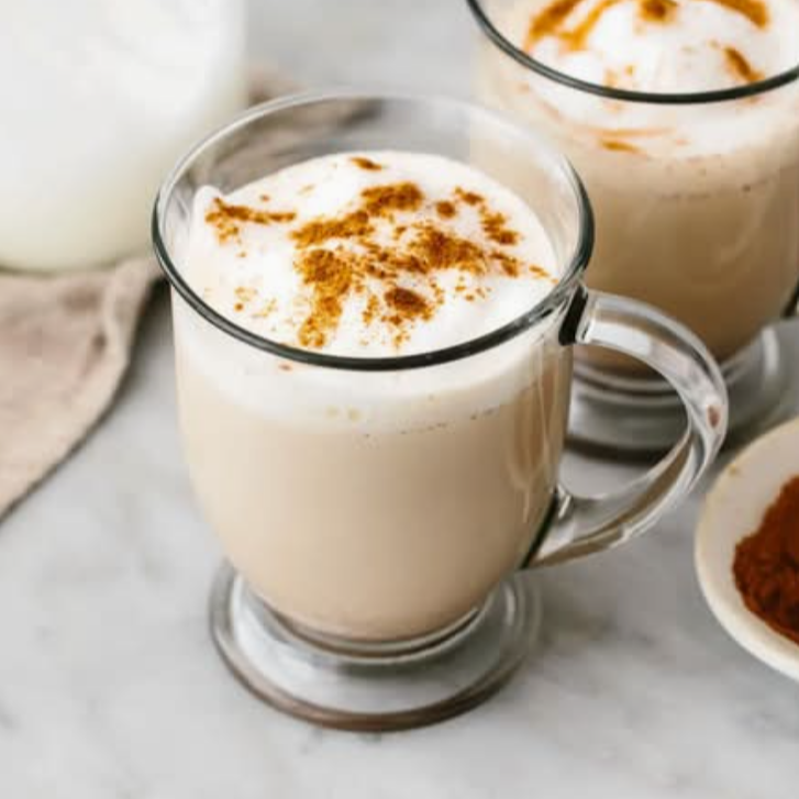 Delicioso té chai caliente, con base de leche espumosa y un shot espresso de la cafetera, el té chai es una mezcla de té negro, con especias y plantas aromáticas, originaria del sur de la india.