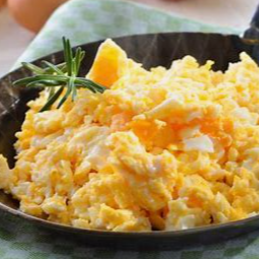Huevos revueltos al gusto, selecciona el complemento que gustes.