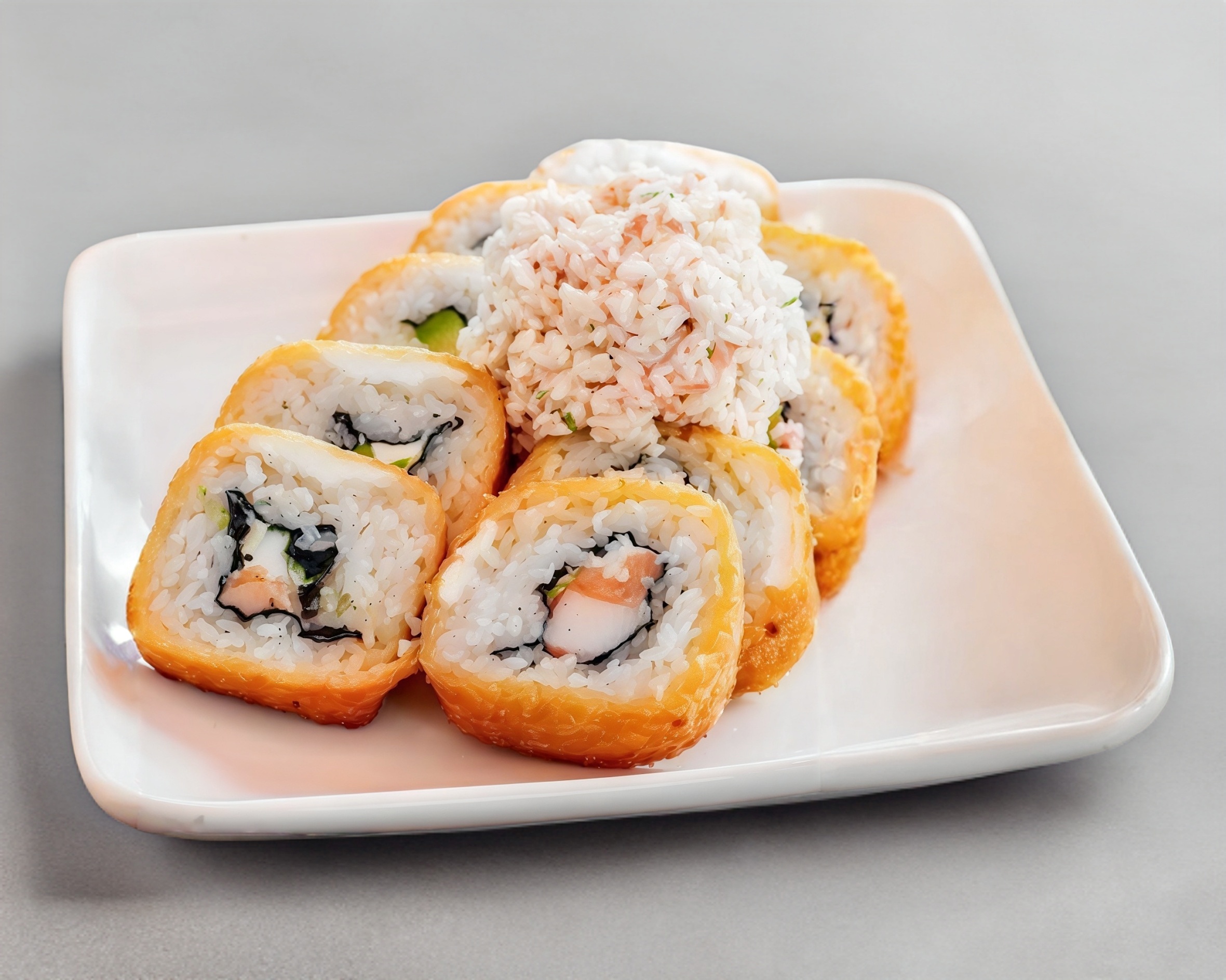 Por dentro: Philadelphia, pepino y proteína a elegir, por fuera: empanizado y coronado con aderezo tampico.