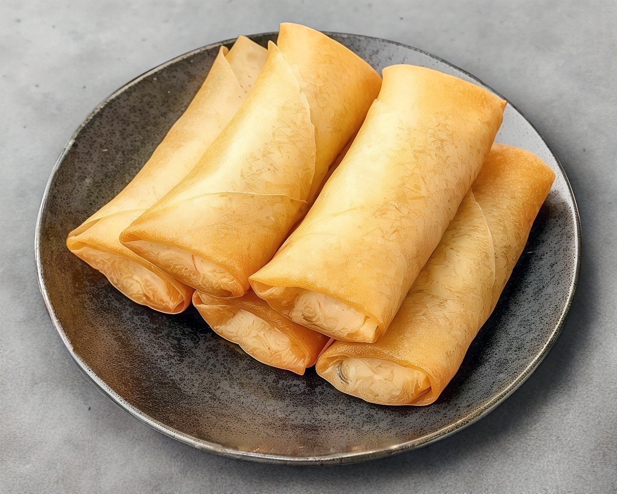 Rollitos rellenos con queso Philadelphia y ensalada de tampico.