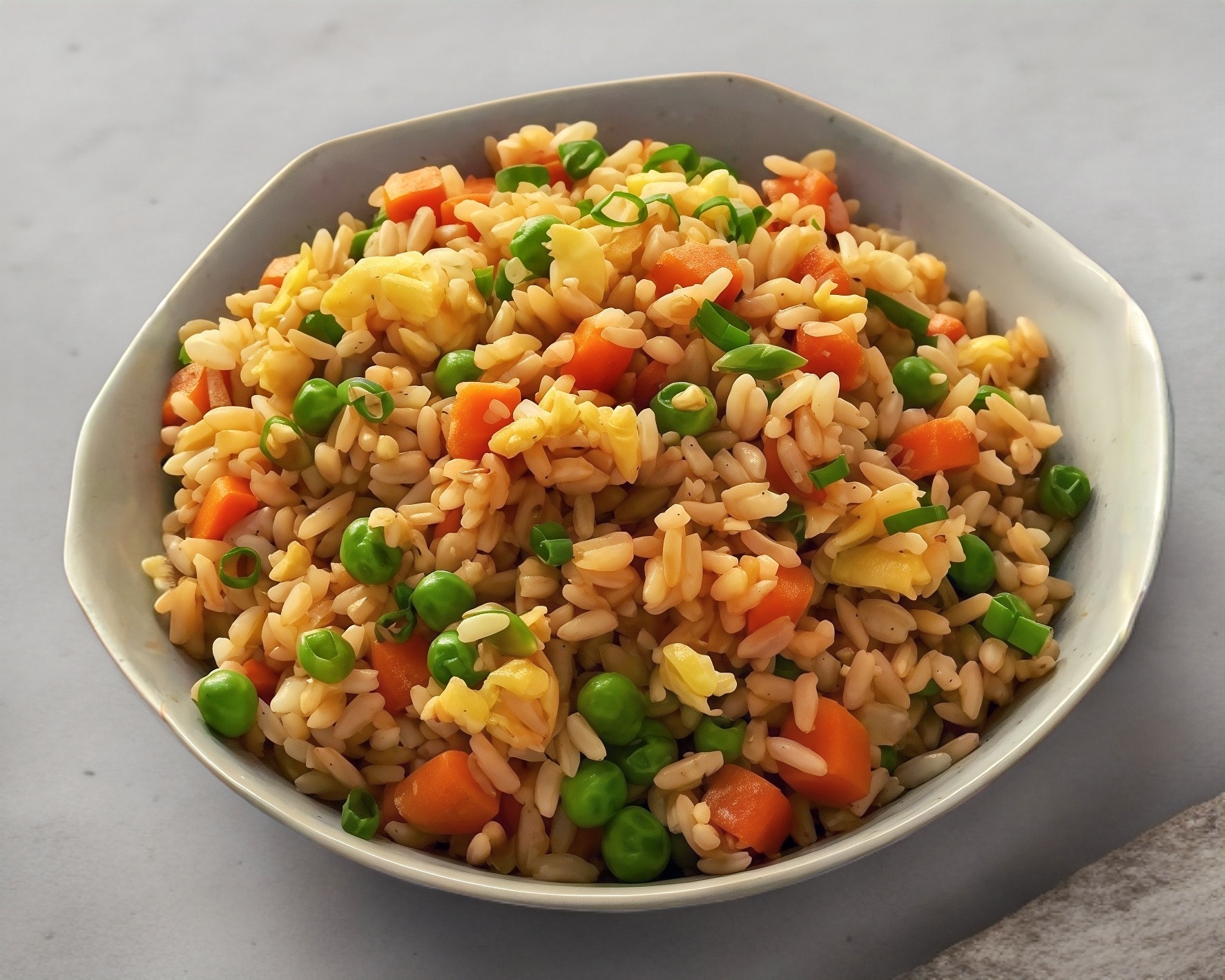 Arroz frito con calabaza y zanahoria acompañado de aguacate, queso Philadelphia, ensalada de tampico, anguila y ajonjolí.