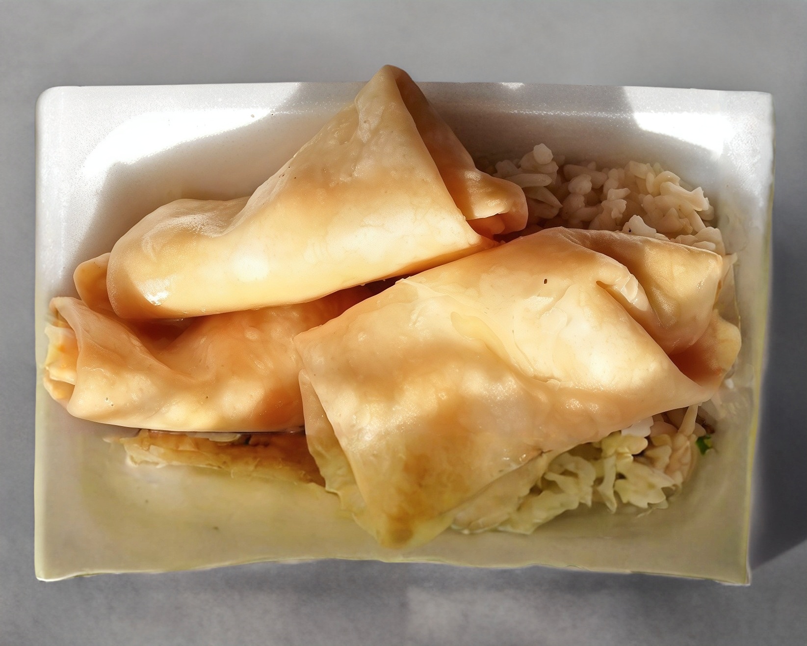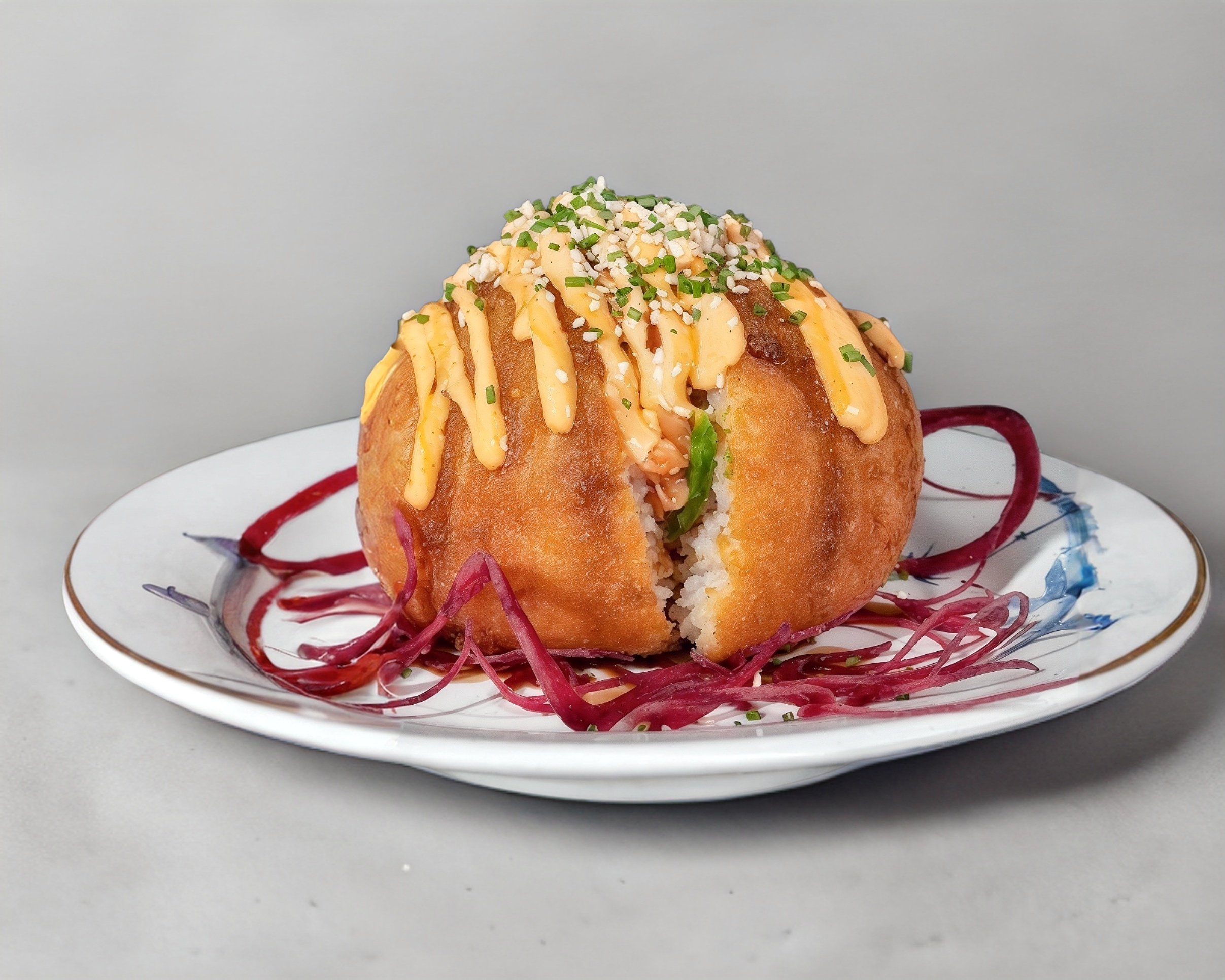 Bola de arroz empanizada, rellena de queso Philadelphia y proteína a elegir.