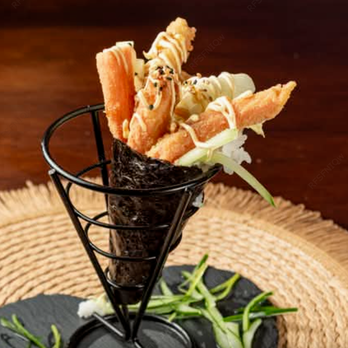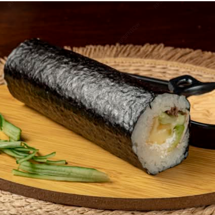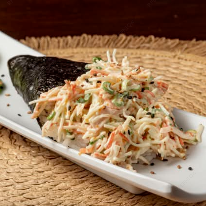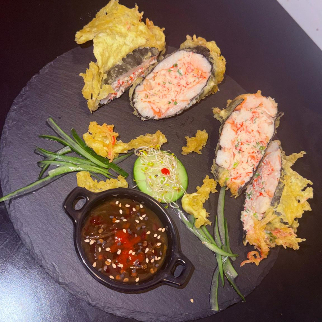Capeado, envuelto en alga, rellena de camarón y ENS kani. Contiene mariscos 🦐
