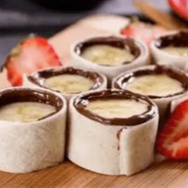 Envuelto en masa dulce, relleno de Nutella, Philadelphia y fruta, coronado con más fruta y La Lechera. Contiene nueces 🥜