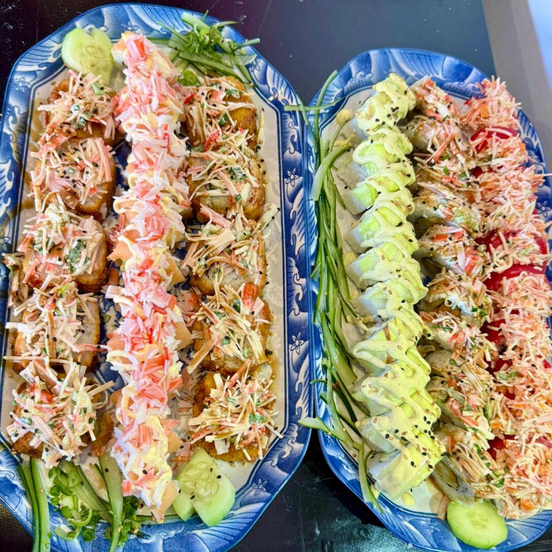 Yama roll, arashi roll, retasu roll, kani roll, pelusa roll. Contiene mariscos 🦐