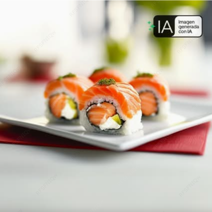 Envuelto en Philadelphia, relleno de aguacate, pepino y salmón. Contiene pescado 🐟