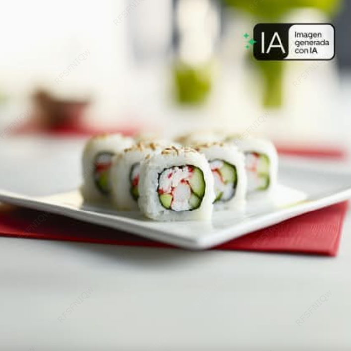 Envuelto en Philadelphia, relleno de aguacate, pepino y cangrejo. Contiene mariscos 🦐