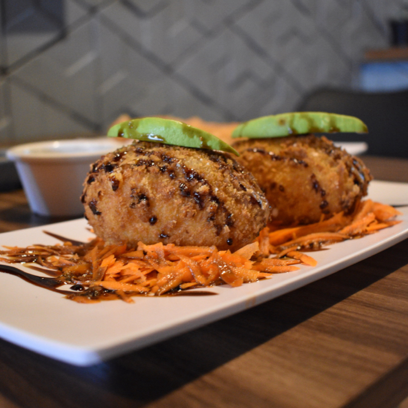 2 pcs de chiles caribe fritos rellenos de queso Philadelphia, queso chihuahua y Tampico, con proteína a elegir.