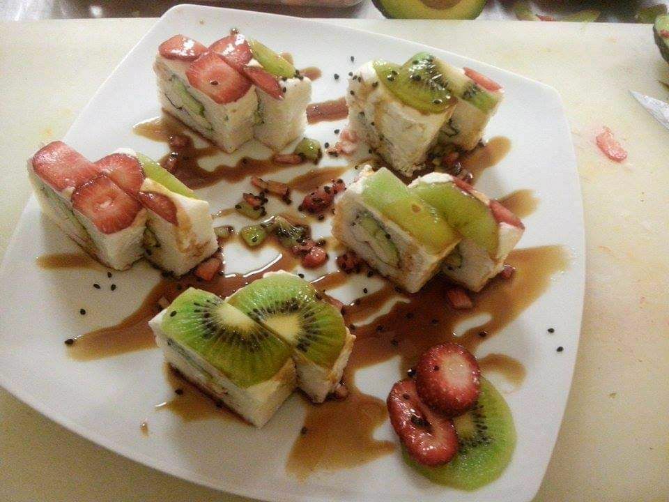 Sushi gigante con Philadelphia aguacate y por dentro por fuera gratinado de queso manchego simplemente delicioso