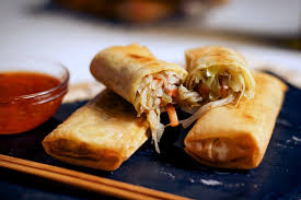 Salmón, aguacate, pepino, zanahoria y queso, empanizado con aderezo ensalada tampico.