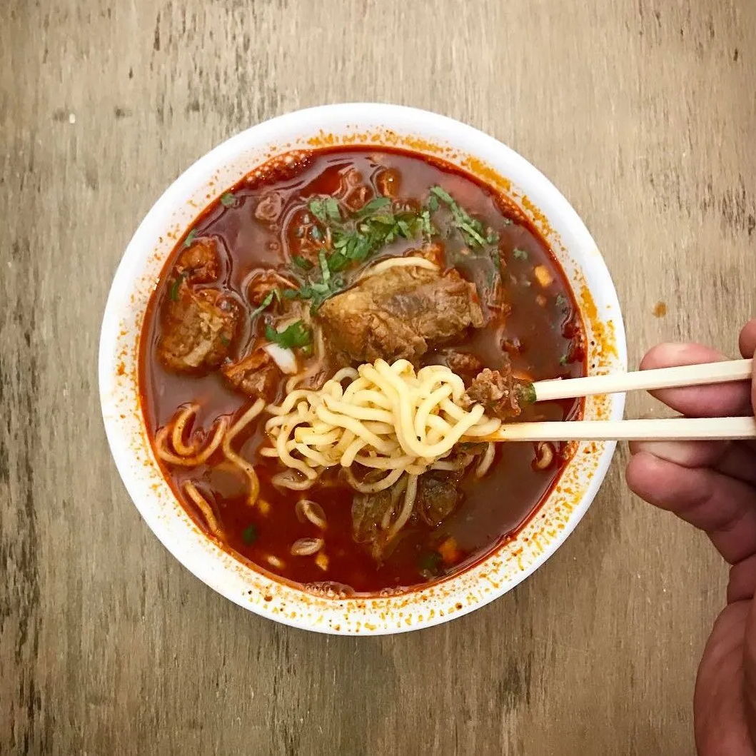 500 ml tradicional barbacoa en tallarines ramen, verdurita y limon aparte