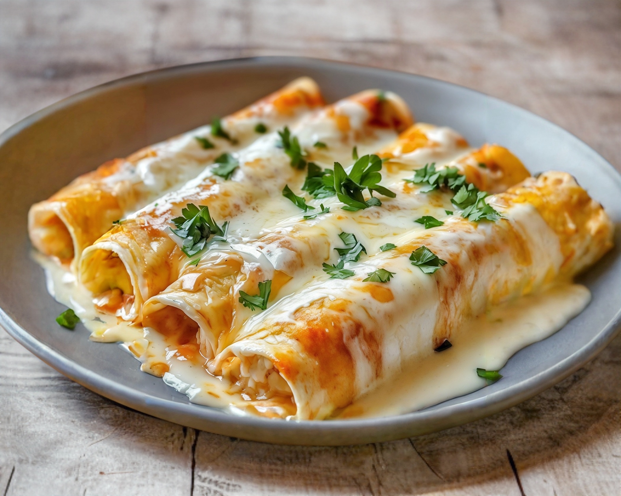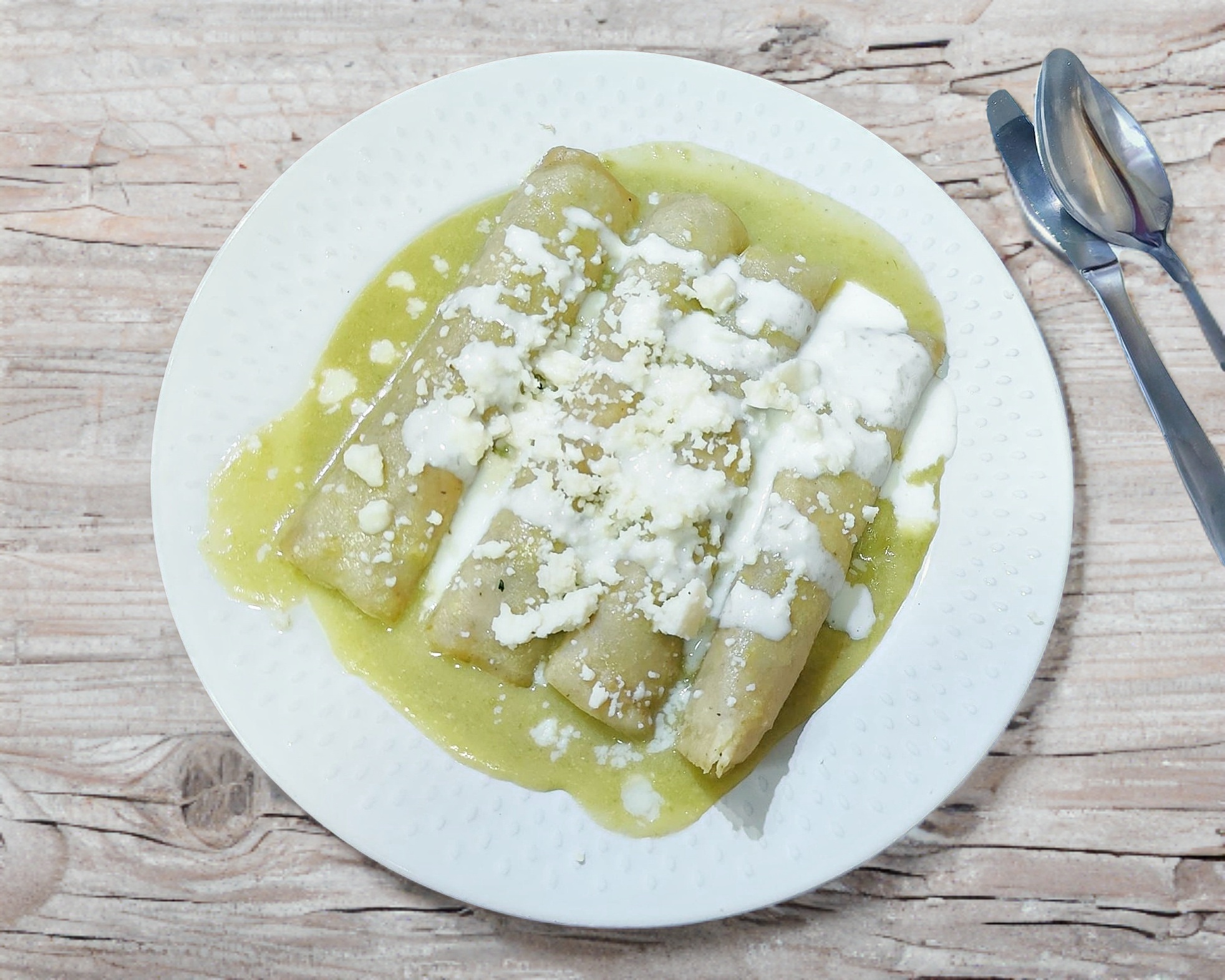 Platillo individual: enchiladas rellenas de pollo en salsa chipotle cremosita.