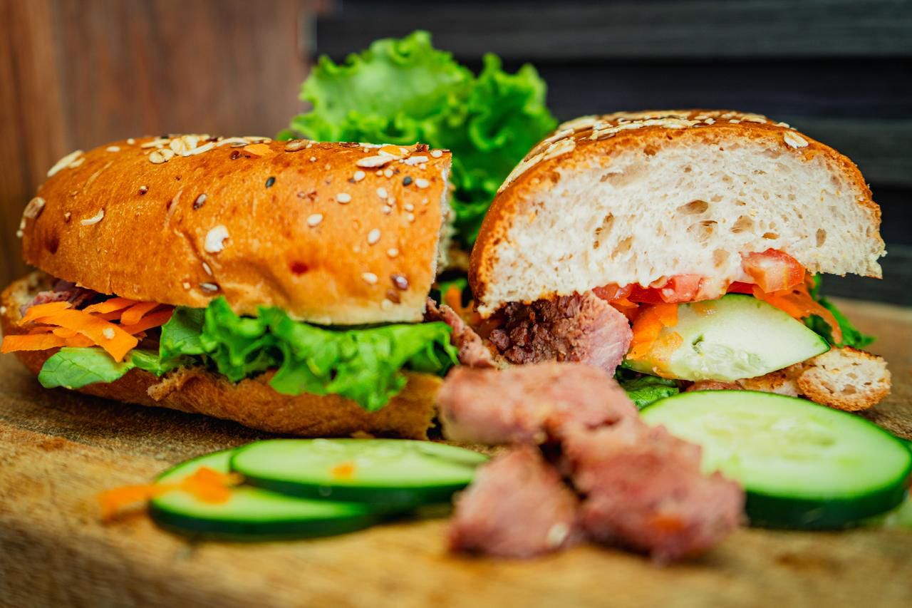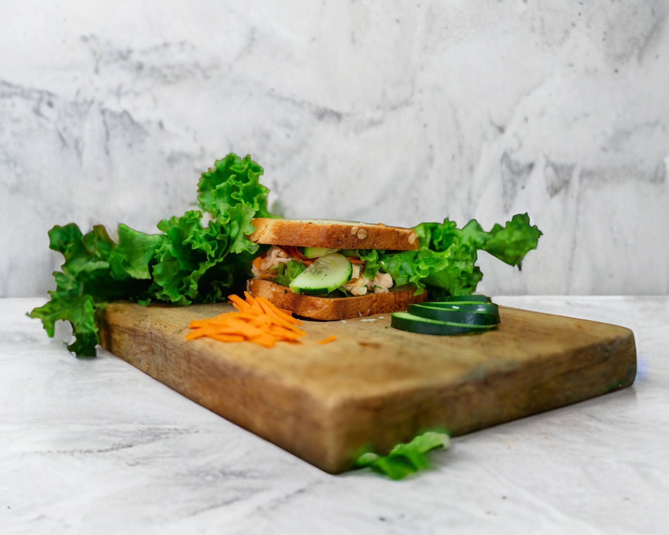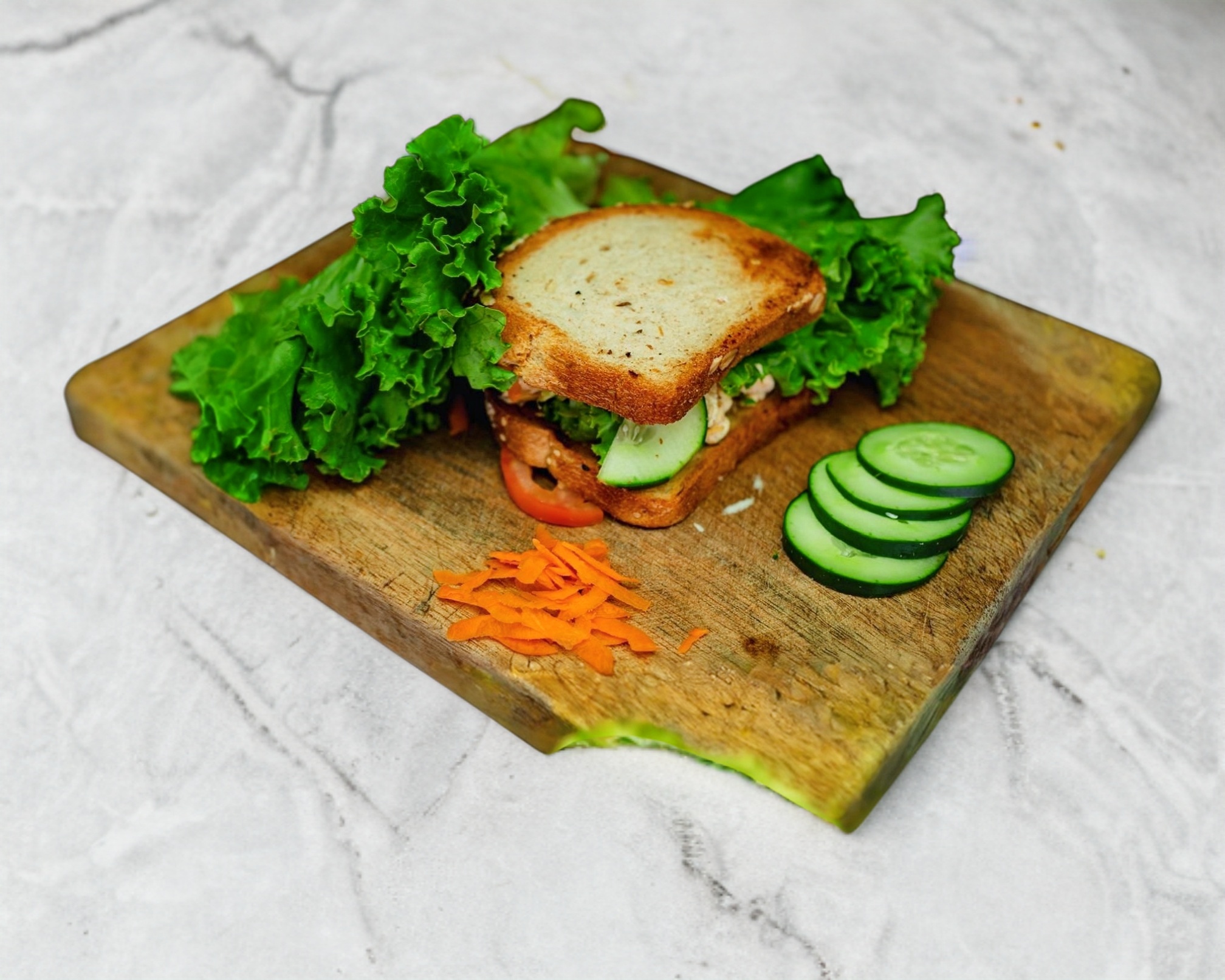Pan multigrano, acompañado de lechuga, espinaca zanahoria, jitomate, pepino.