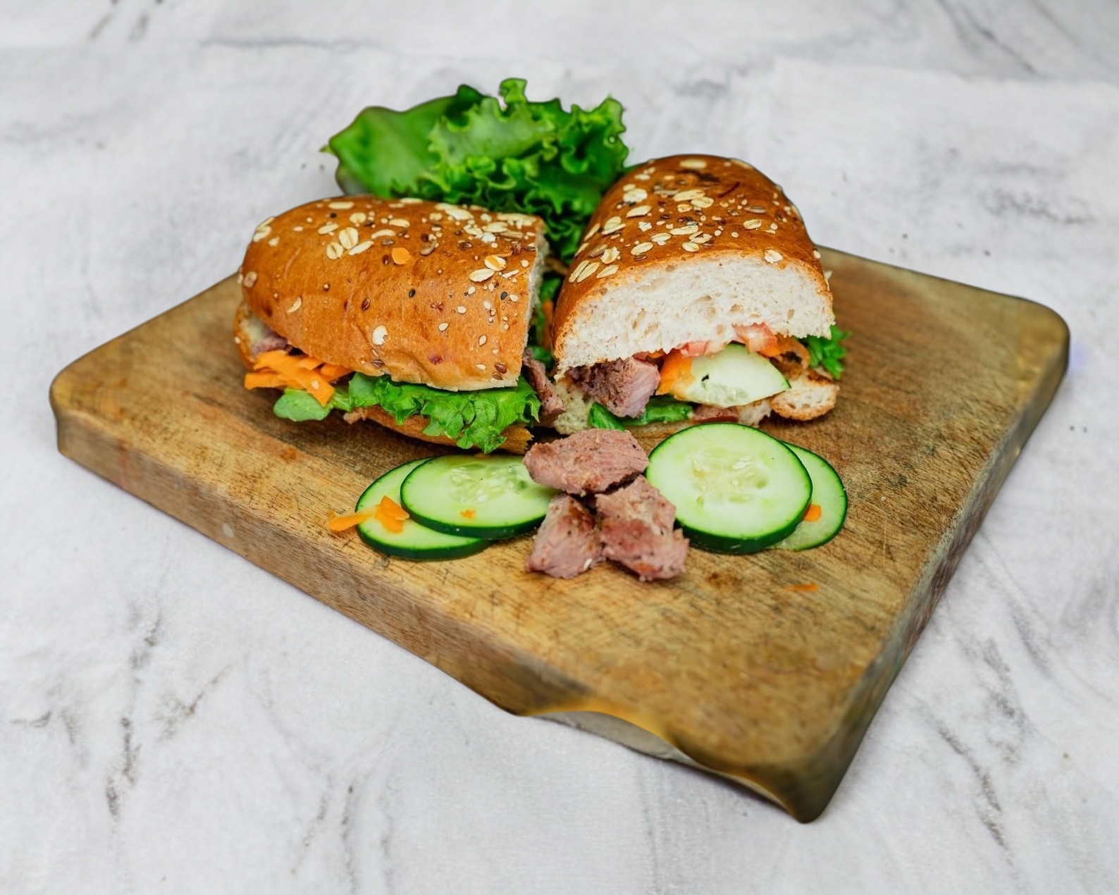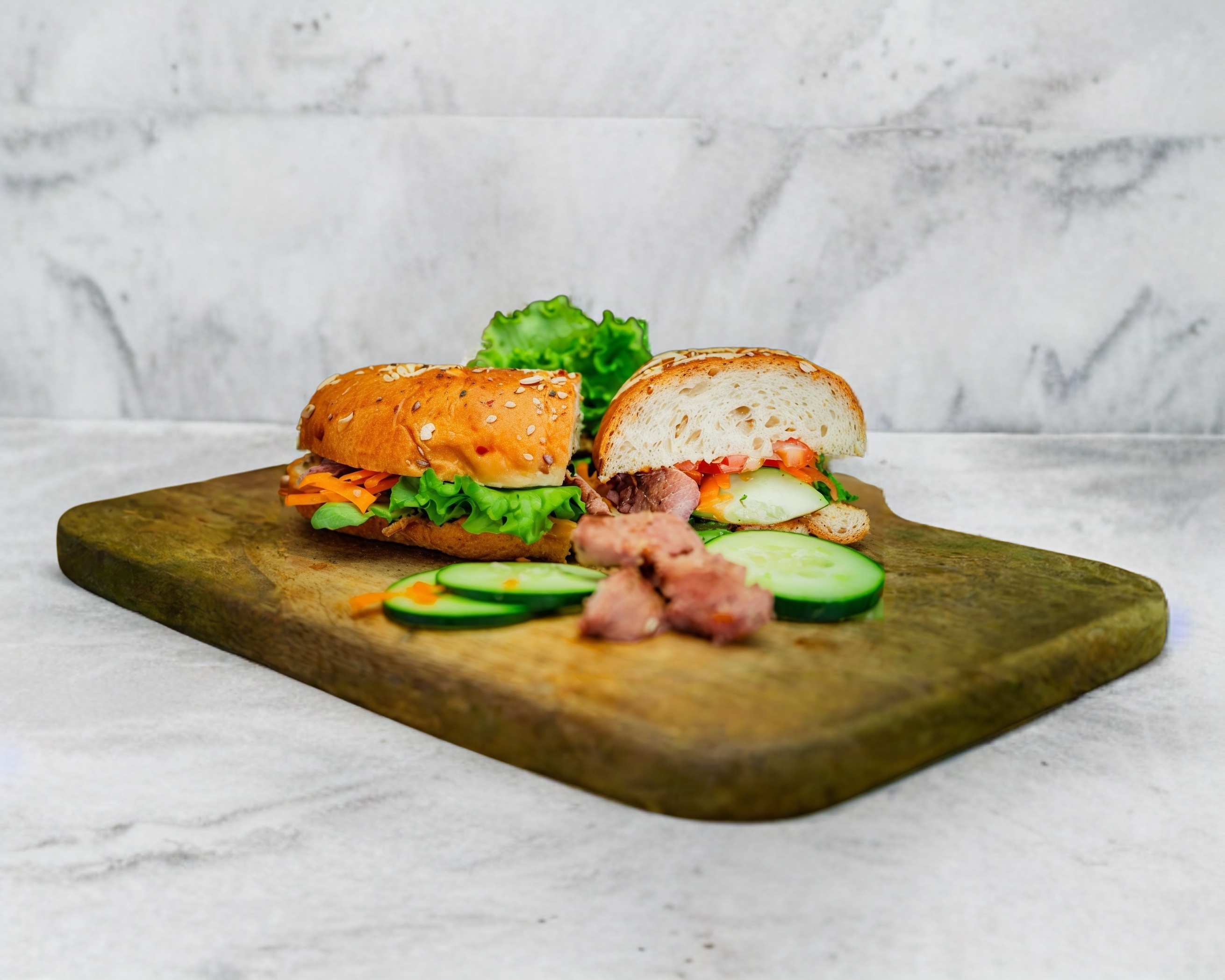 Pan multigrano 30 cm, acompañado de lechuga, espinaca, zanahoria, pepino, jitomate.