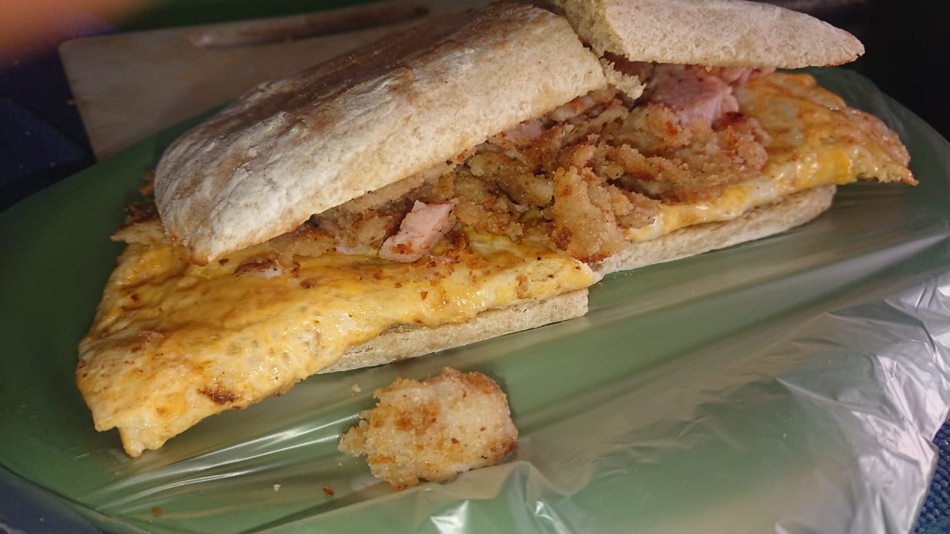 Huevo, milanesa y jamón.