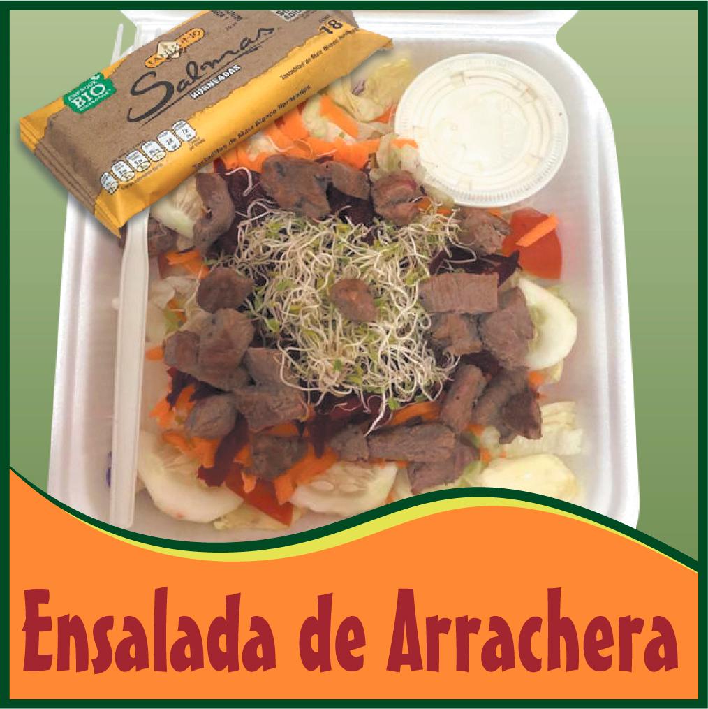 Lechuga mix, pepino, jitomate, zanahoria, betabel, germen, crotones y tostaditas de maíz blanco horneadas.