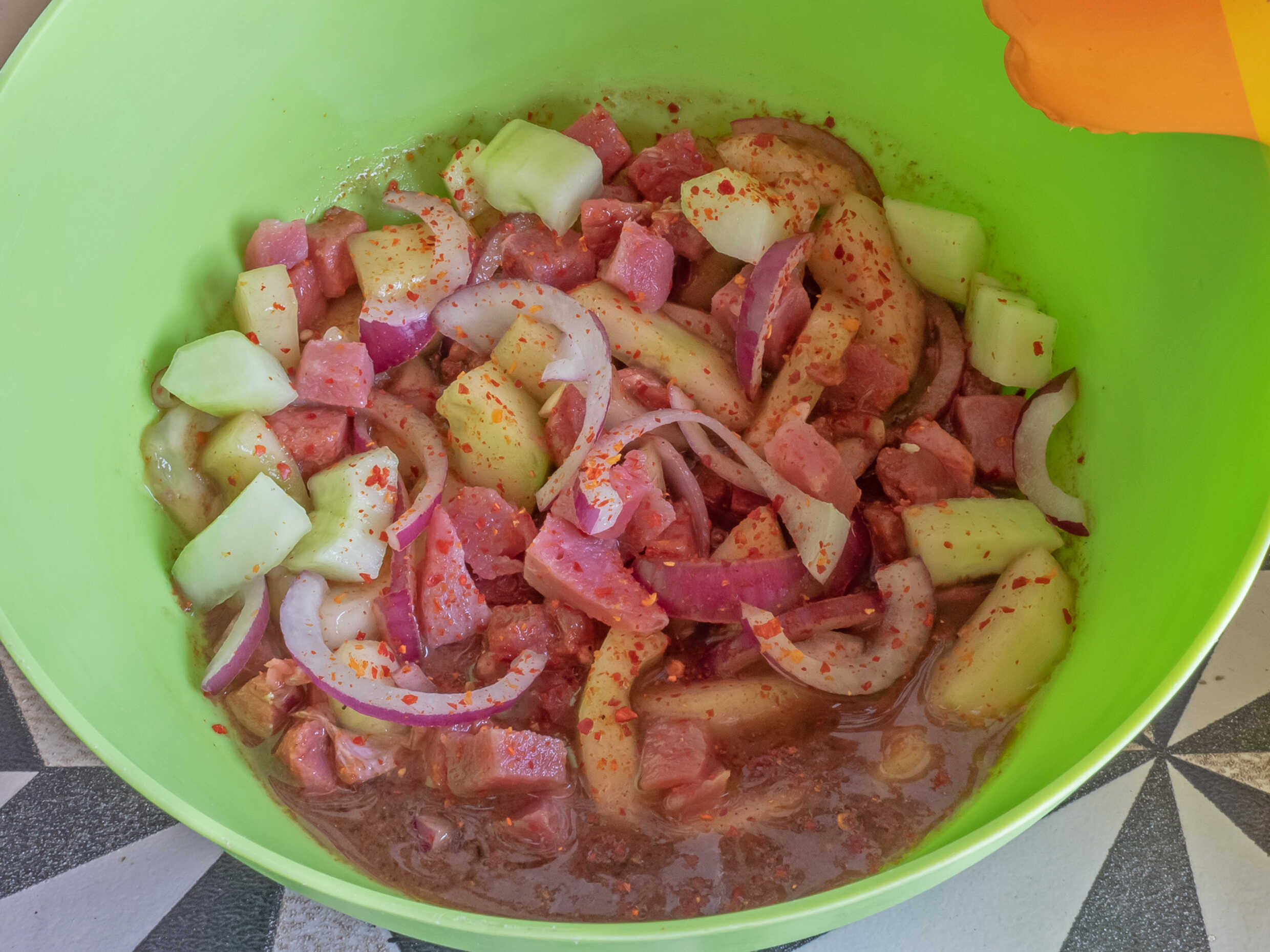 1lt Atùn,pepino,cebolla morada,marinado en una salsa roja a base de chile de àrbol