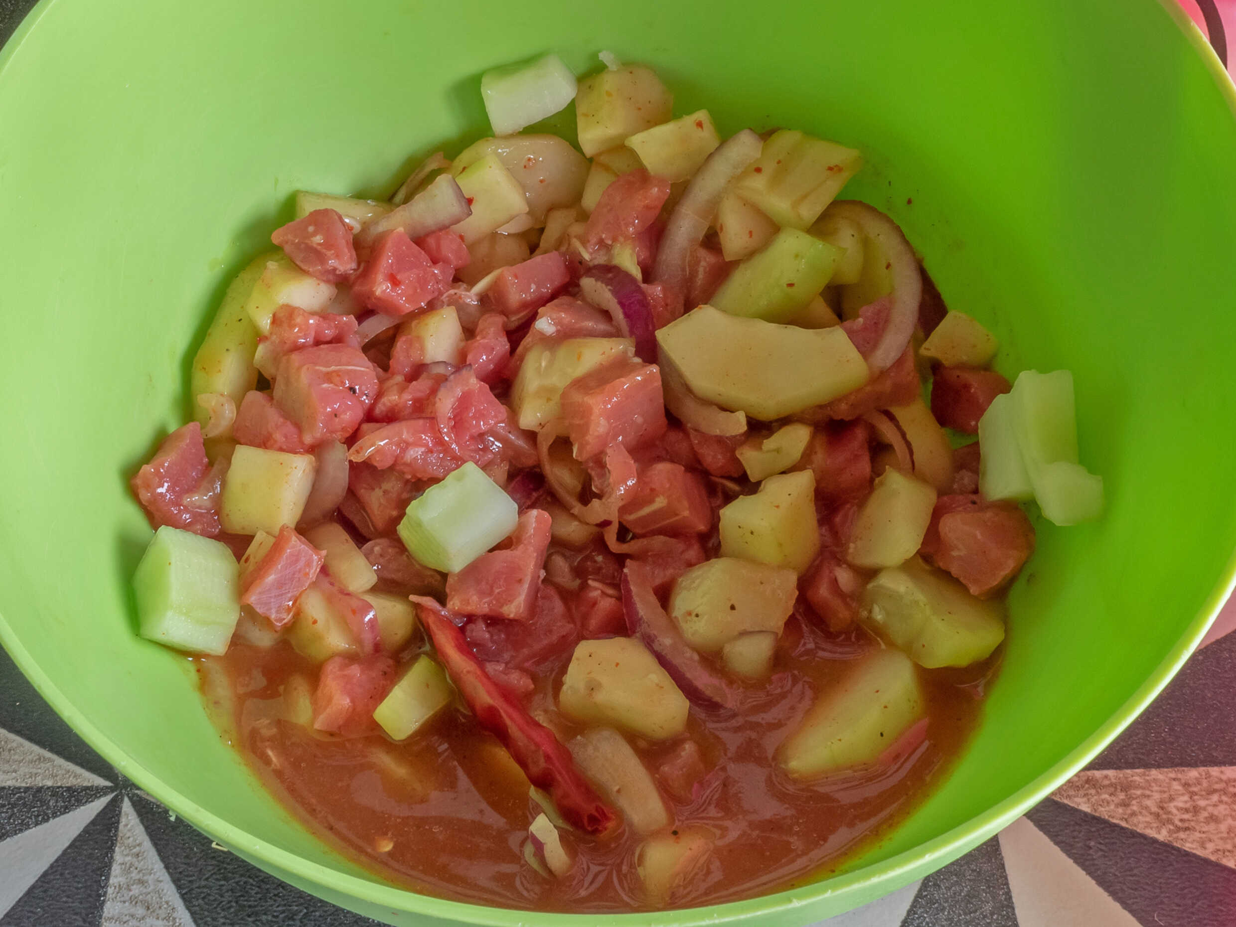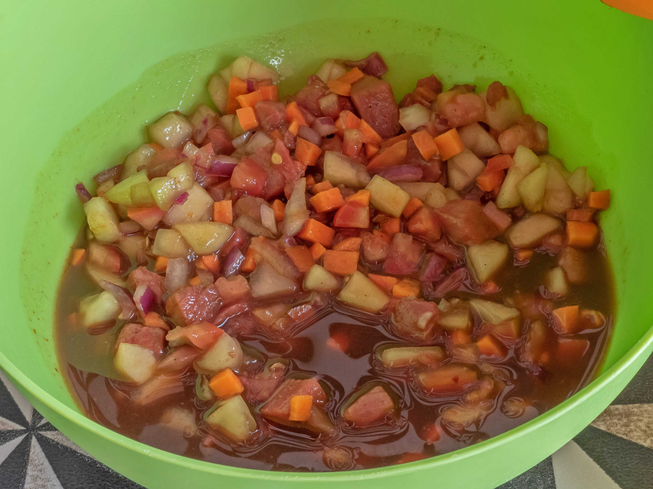 1 Lt en cubitos,pepino,cebolla,marinado en una salsa a base de salsas negras y chile chiltepìn, tipico de Sinaloa