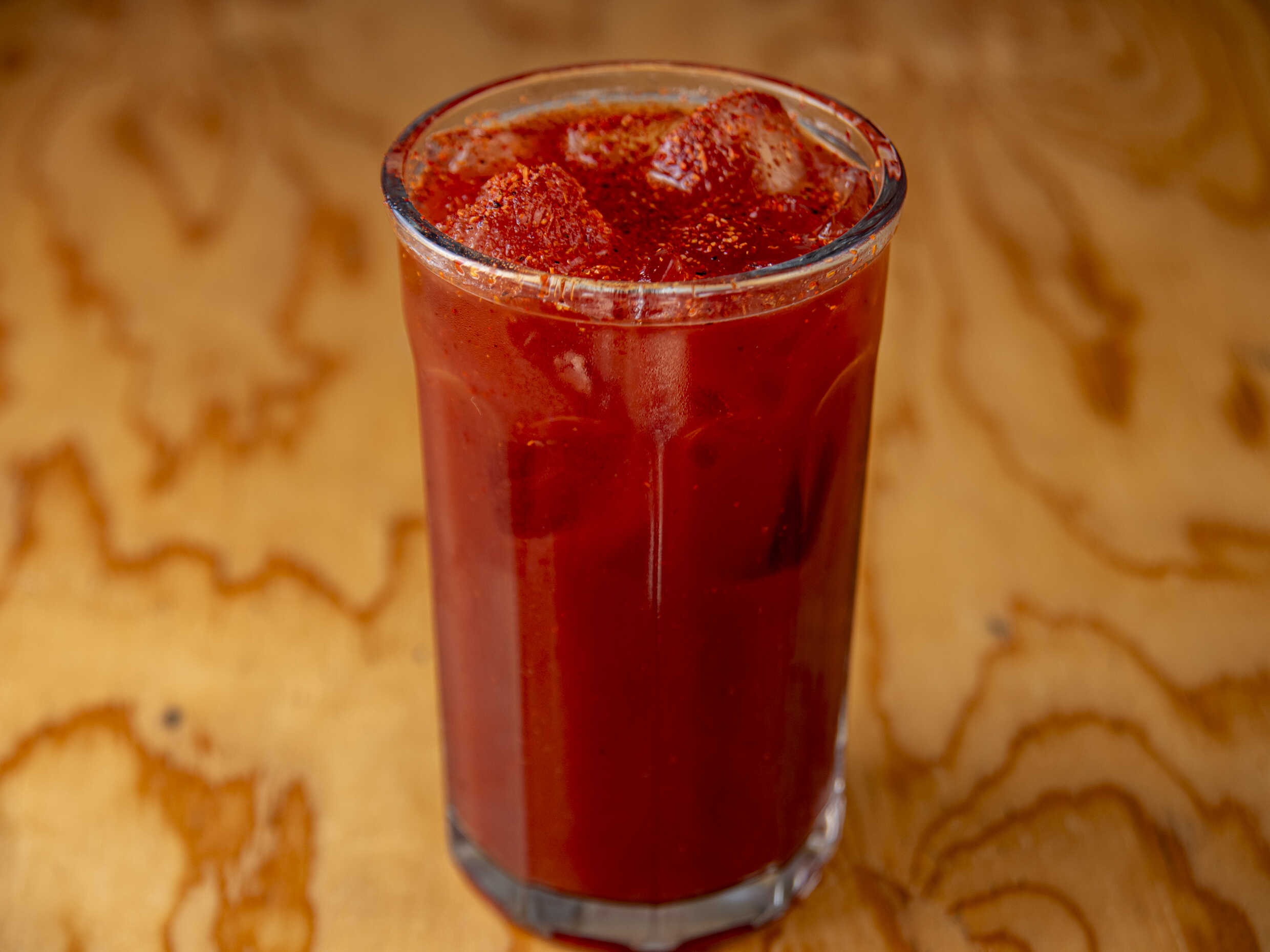 Jugo de almeja preparado con hielo ,limon,salsas negras y especias