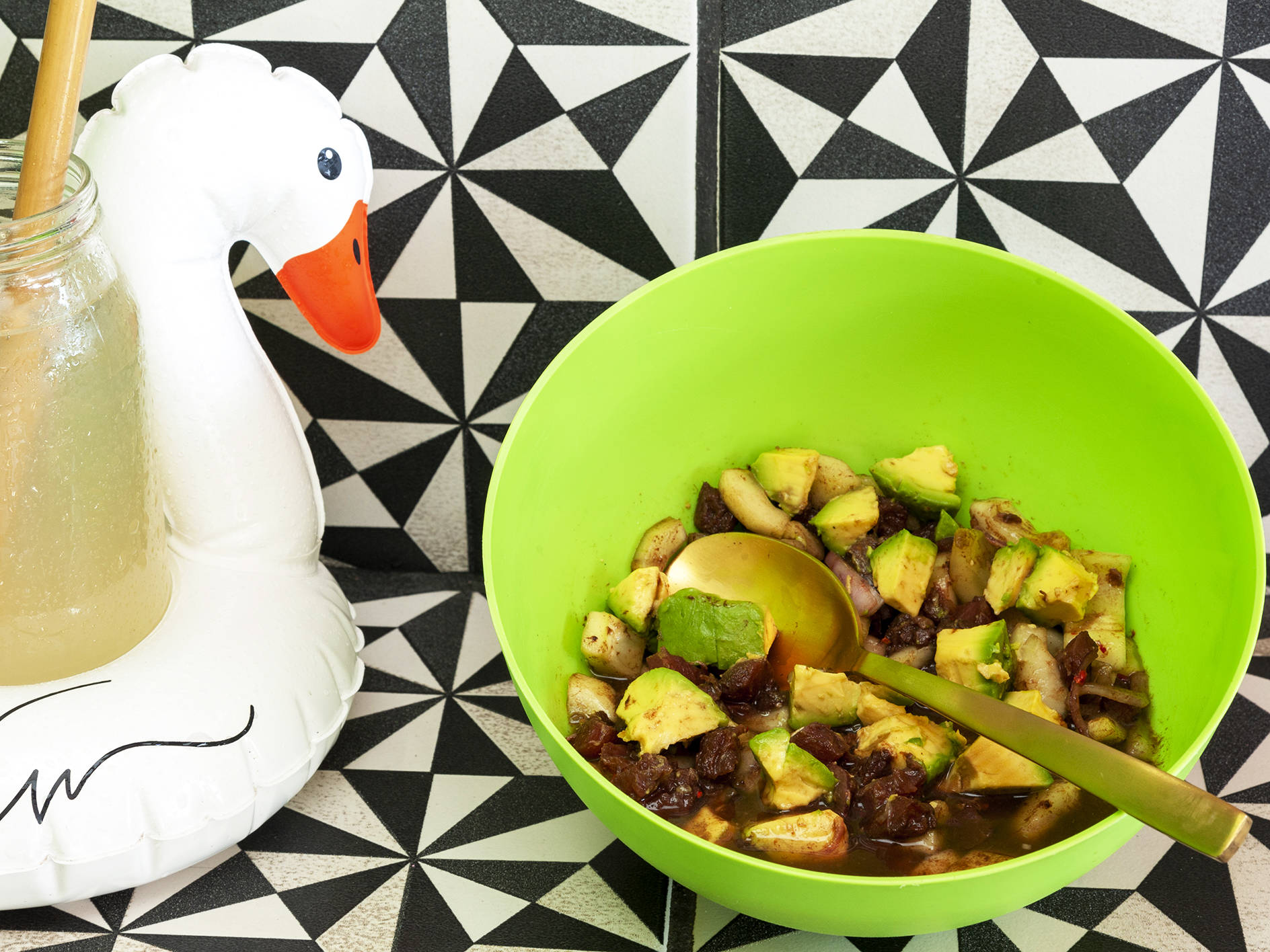 Atun,pepino,cebolla morada preparado con salsa de aguacate y chile serrano