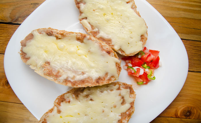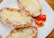 1 Mollete con base de frijol, cubierto de queso fundido.
