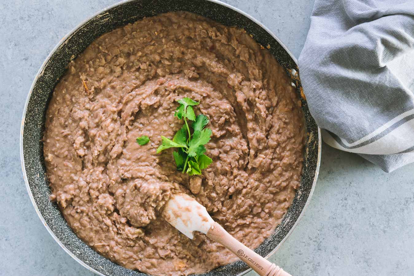 2 Burritos de chicharrón presando guisado en salsa roja, acompañados de frijol.