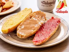 1 Mollete con base de frijol, chilaquiles rojos o verdes, bañados en queso fundido, crema, queso y cebolla.