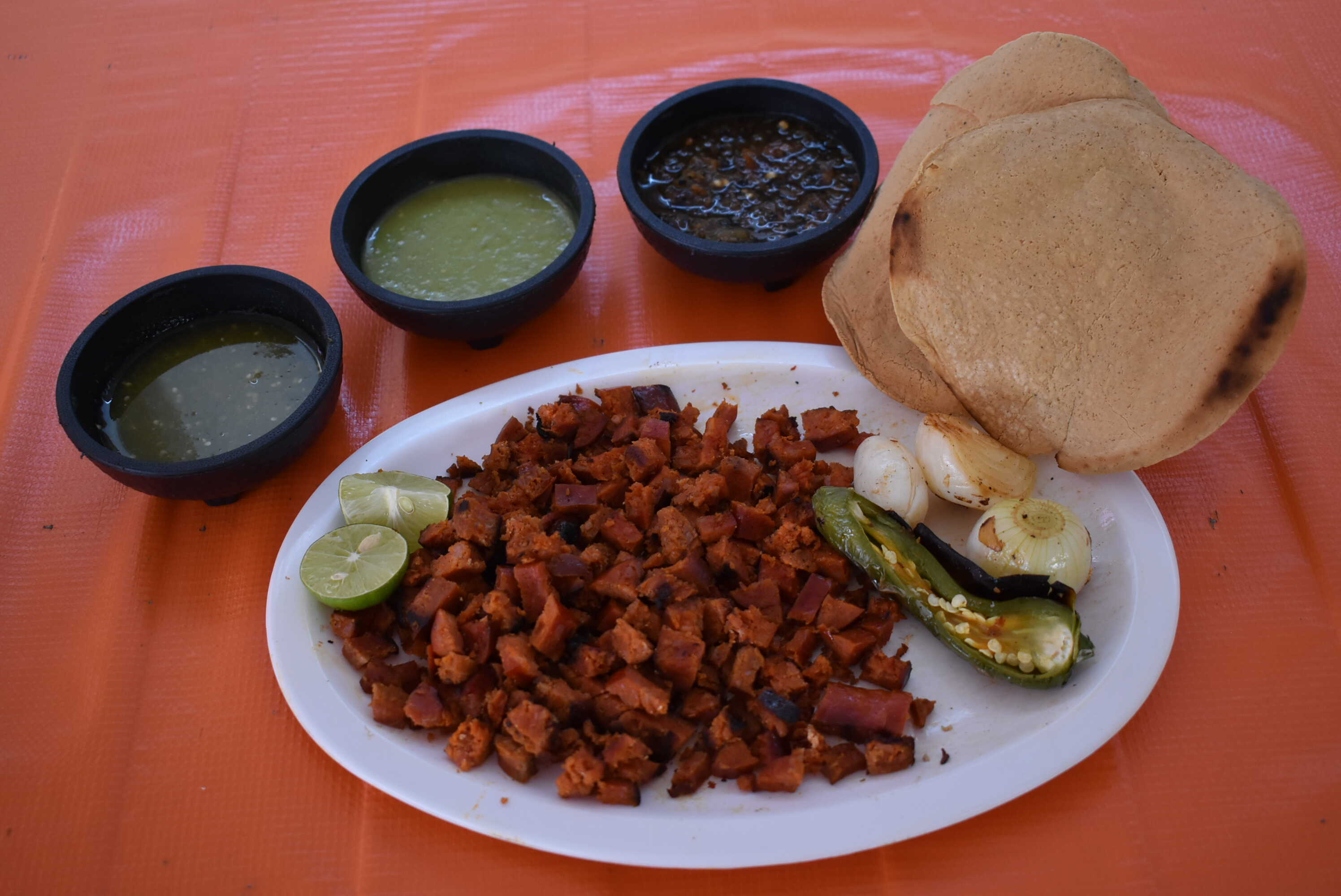240 gr de Chorizo, 5 tortillas, cebolla guisada y chile toreado