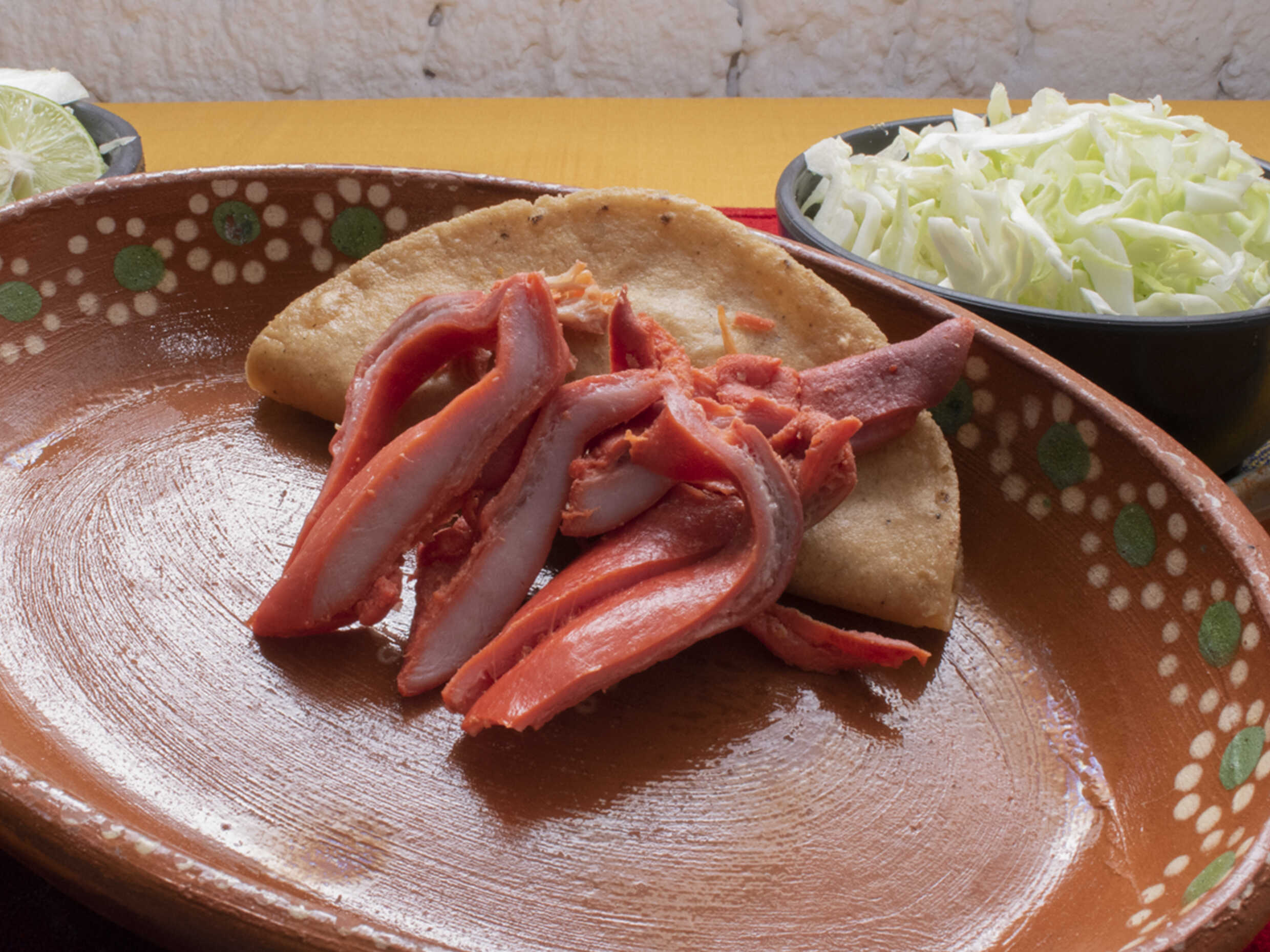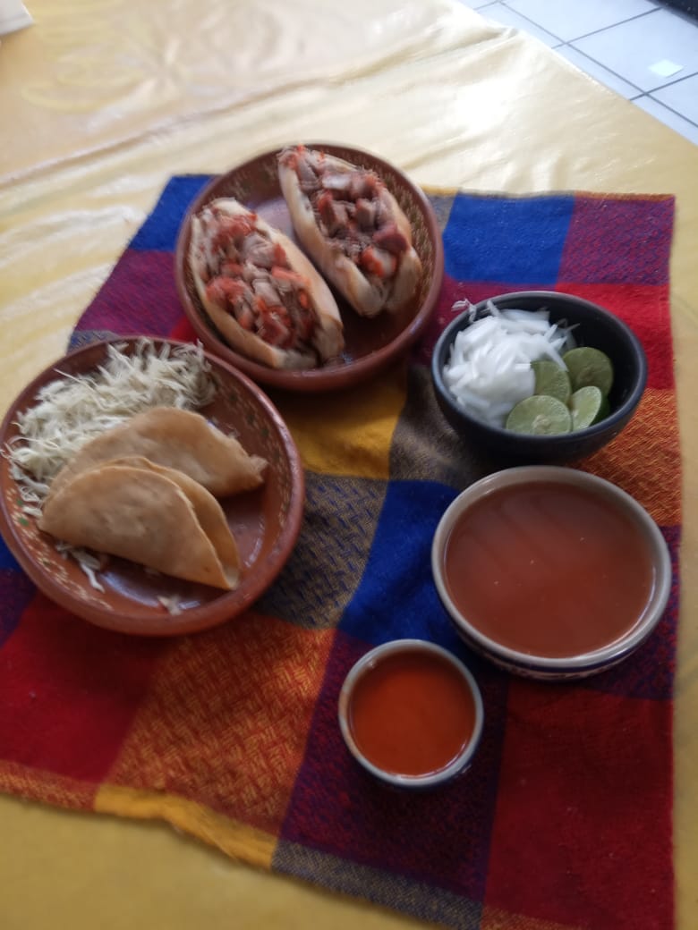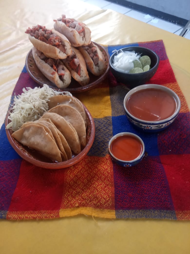 1 torta de buche con su salsa cebolla con chile rábanos limones todo aparte