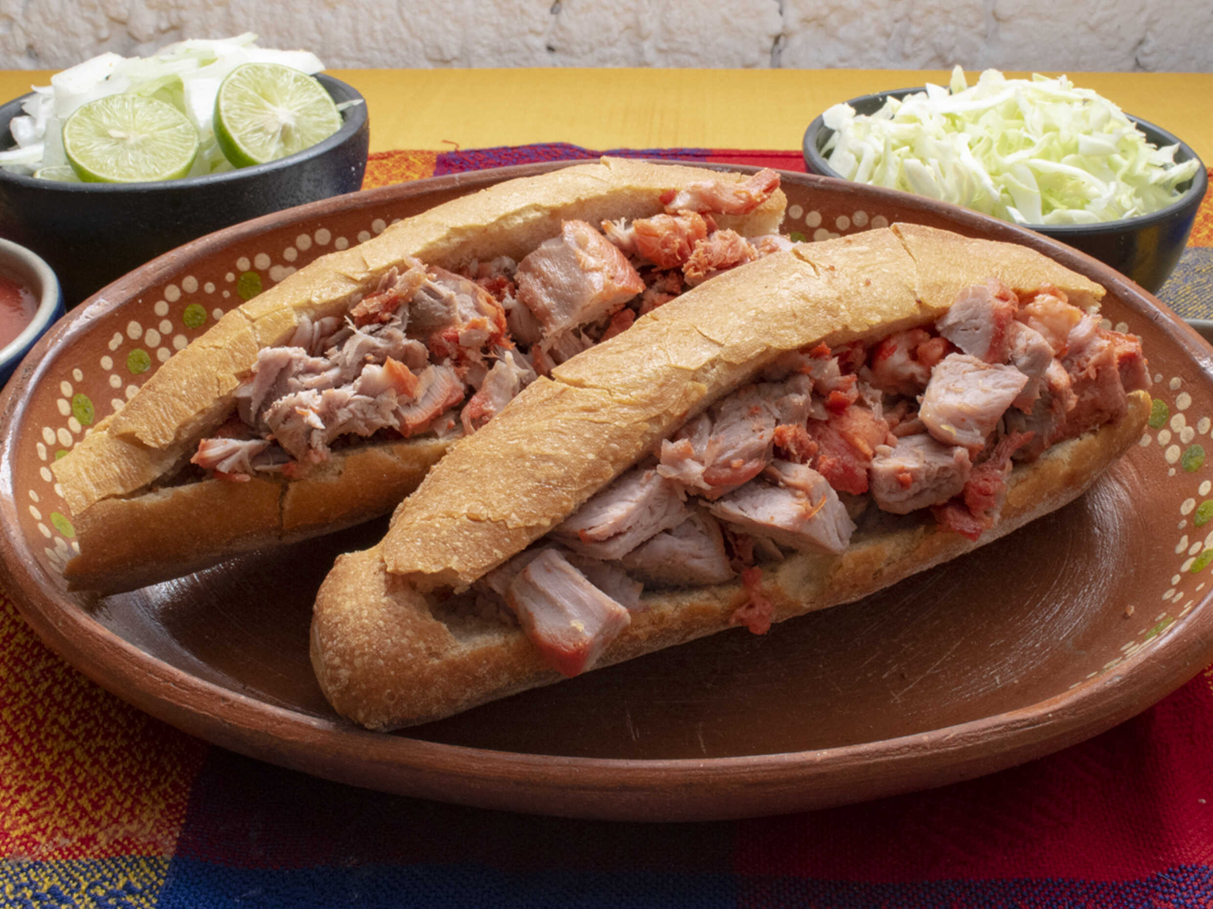 Torta Ahogada de Carnitas*1 + Taco dorado*2 + Medio limón.