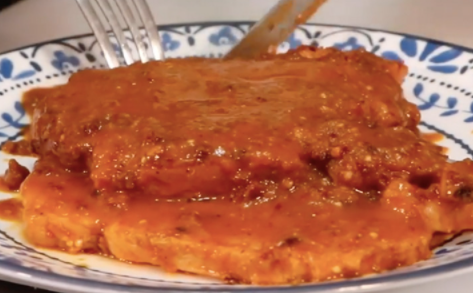 Pollo en Salsa Verde, es pechuga desmenuzada