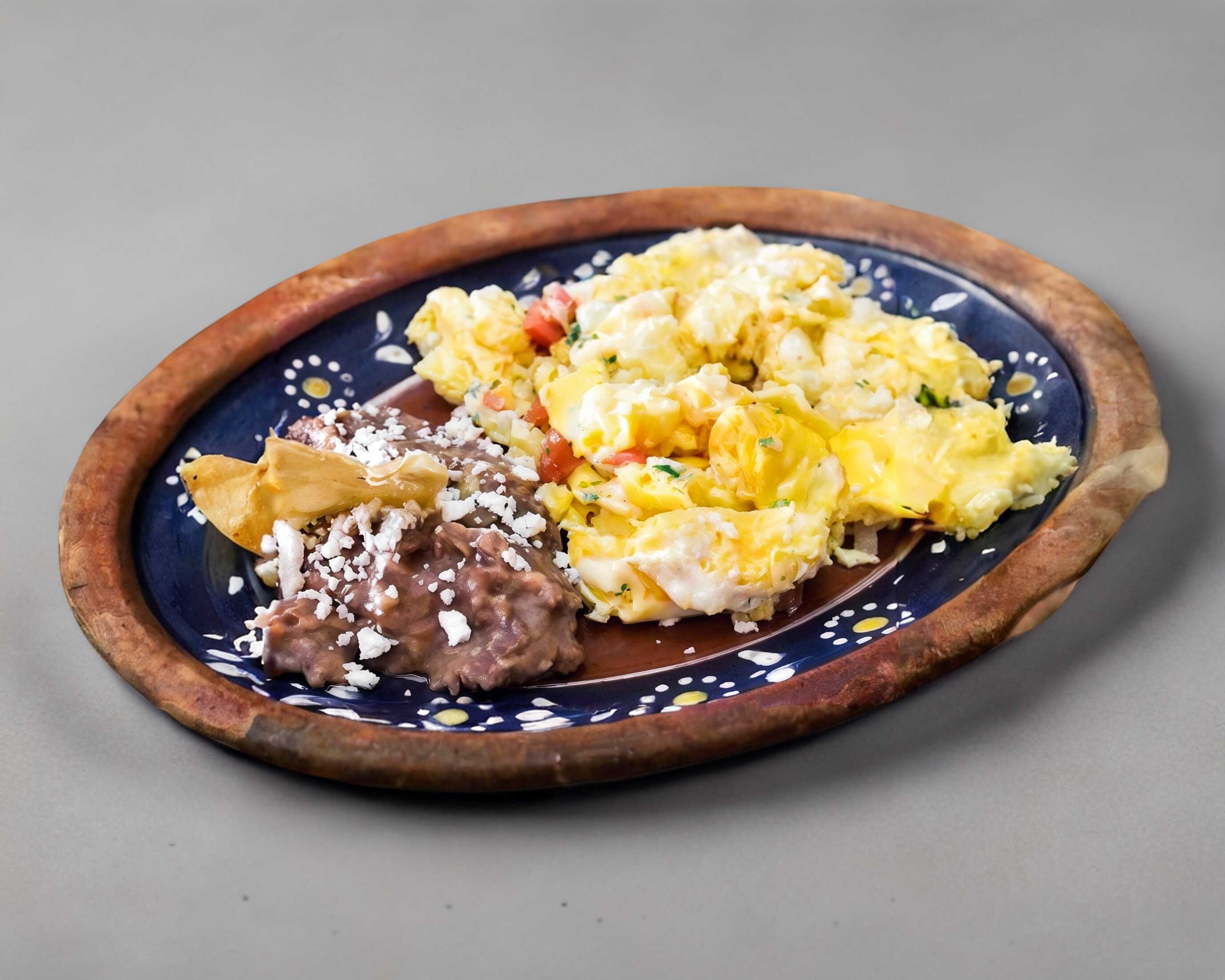 2 Piezas de huevo acompañados de 2 guarniciones.