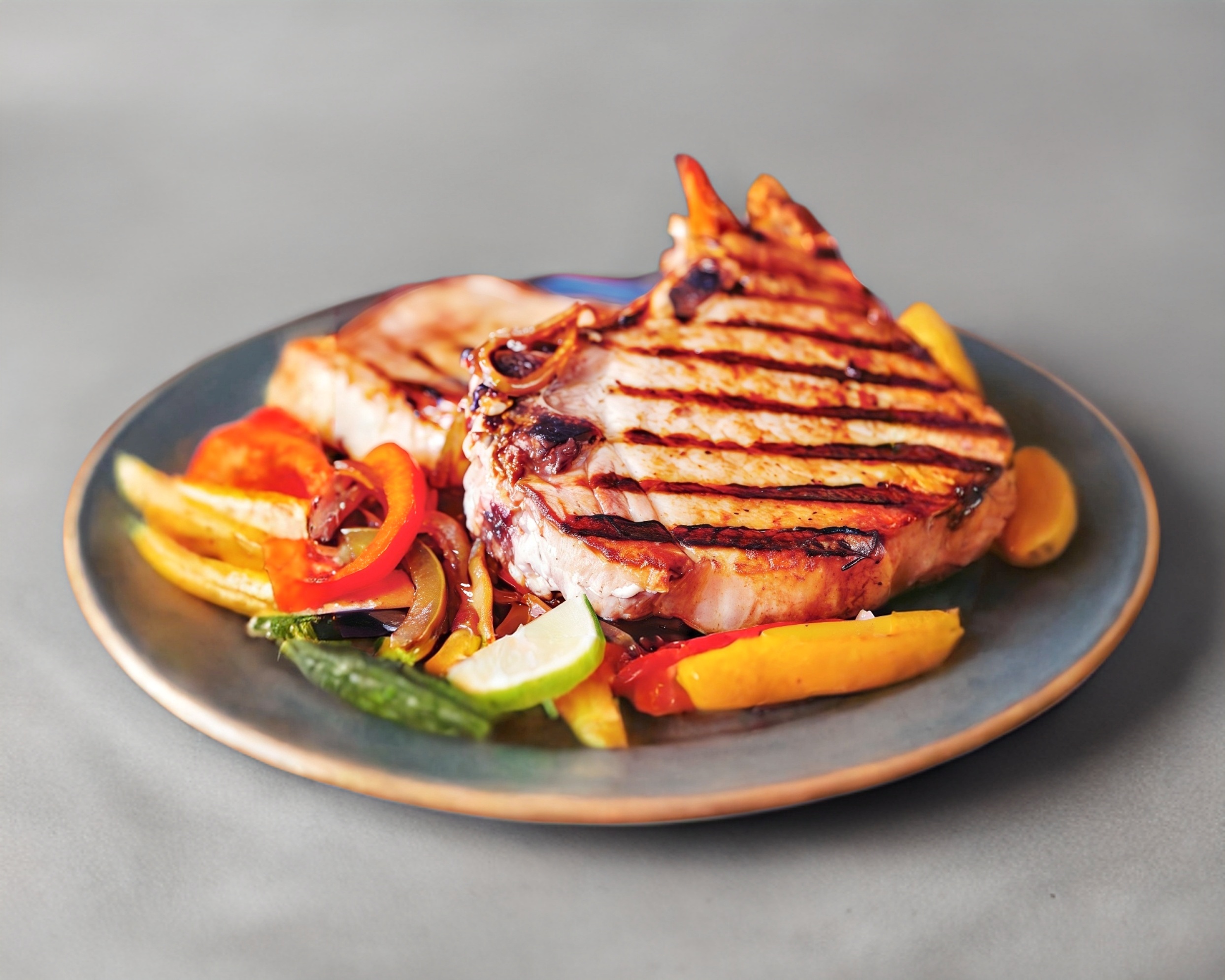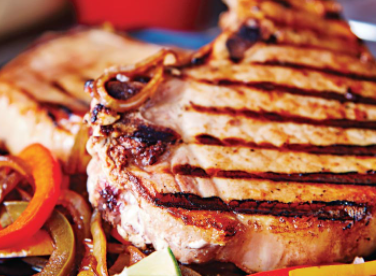2 Piezas de chuleta ahumada acompañada de 2 guarniciones.