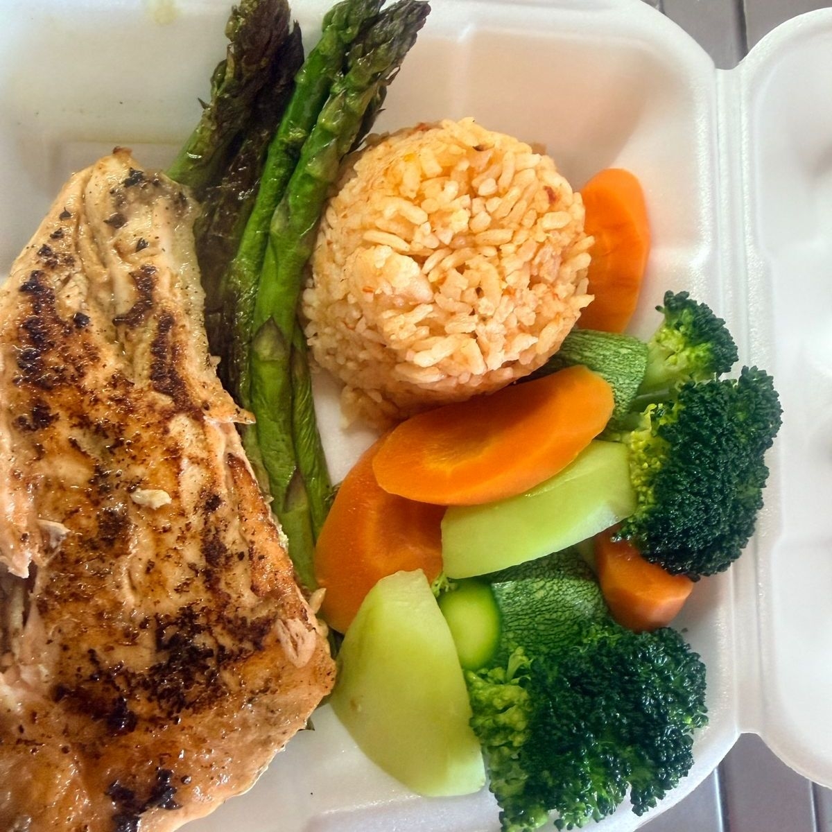 Filete de pollo a la plancha, acompañado de 2 guarniciones a elegir.