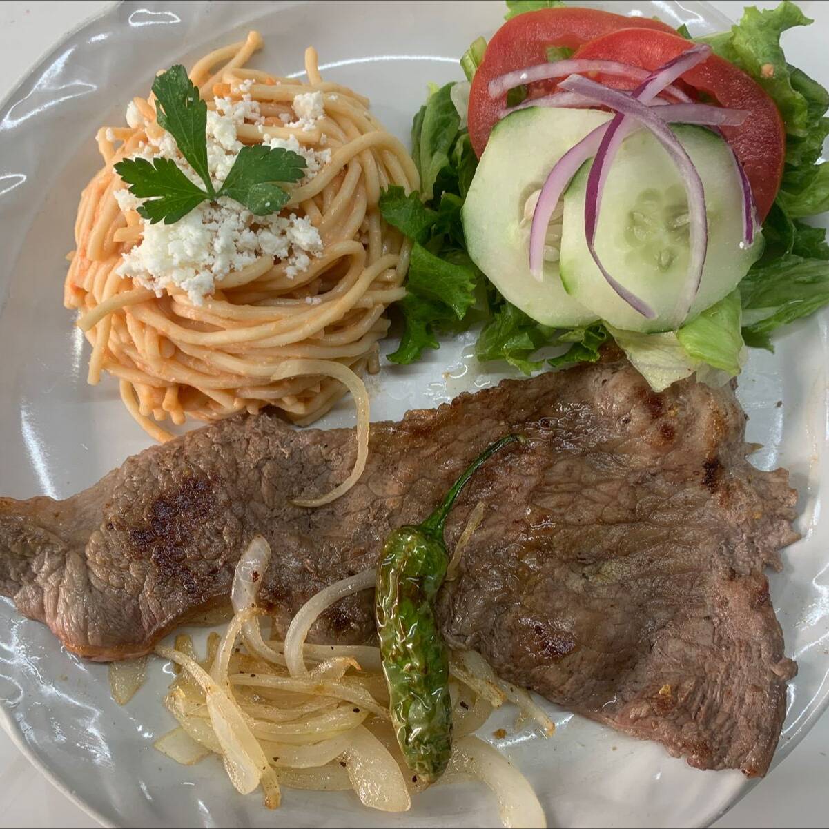 BISTECK DE RES A LA PLANCHA ACOMPAÑADO DE DOS GUARNICIONES